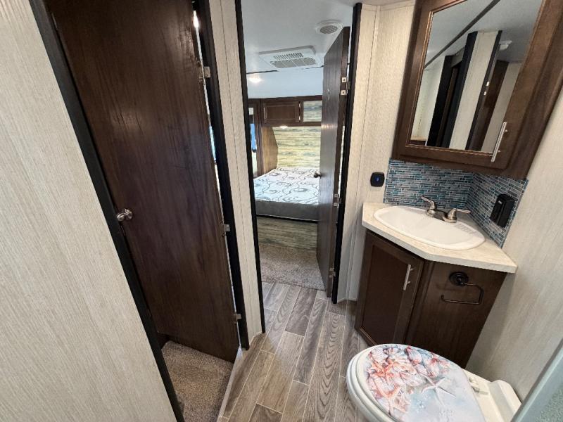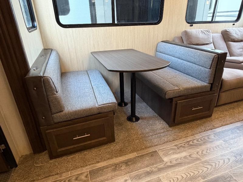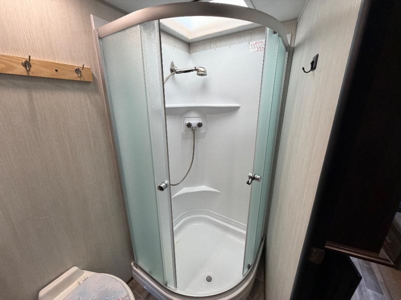 Spend your evenings under the 21' power awning while your extra camping gear stays organized in the pass-through storage compartment. An exterior shower lets you clean up before heading inside, keeping the RV fresh and tidy throughout your stay.