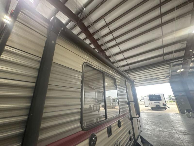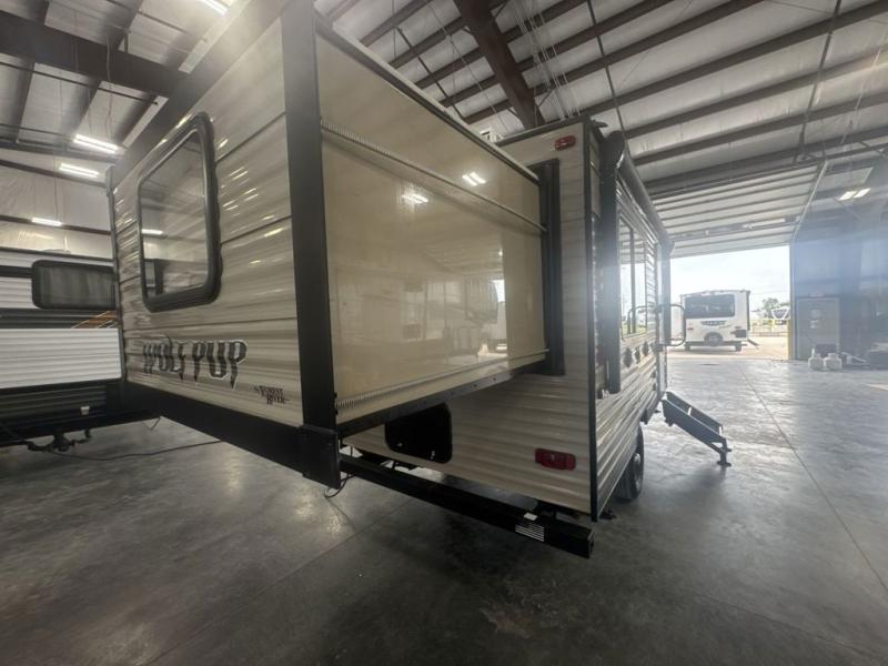 When you choose to camp with a Cherokee Wolf Pup travel trailer, or the toy hauler, you are getting an easily towable lightweight trailer as well as ample room throughout each model. The aerodynamic radius front profile allows for better gas mileage, and the one-piece walkable decked roof allows you to easily clean off the top of your unit after a weekend trip. You'll enjoy features such as an awning with an LED light strip, a high-gloss seamless countertop, and an outside shower with hot and cold water, plus more! With a carbon monoxide detector, safety glass windows, and a smoke detector in each unit, these travel trailers and toy hauler have been constructed with your family's safety in mind. Come select your favorite Wolf Pup model today!