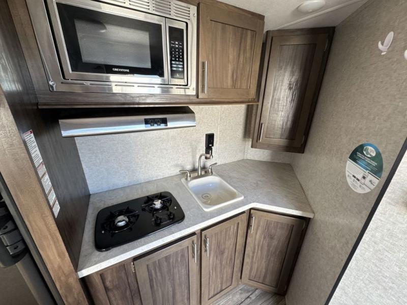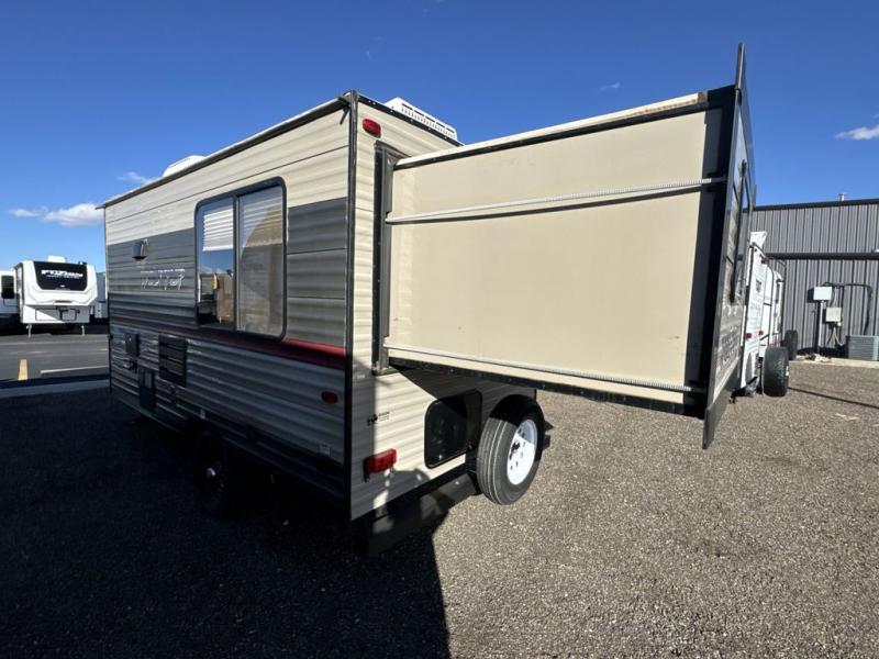 When you choose to camp with a Cherokee Wolf Pup travel trailer, or the toy hauler, you are getting an easily towable lightweight trailer as well as ample room throughout each model. The aerodynamic radius front profile allows for better gas mileage, and the one-piece walkable decked roof allows you to easily clean off the top of your unit after a weekend trip. You'll enjoy features such as an awning with an LED light strip, a high-gloss seamless countertop, and an outside shower with hot and cold water, plus more! With a carbon monoxide detector, safety glass windows, and a smoke detector in each unit, these travel trailers and toy hauler have been constructed with your family's safety in mind. Come select your favorite Wolf Pup model today!