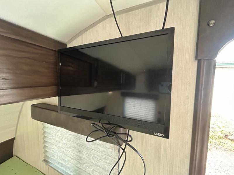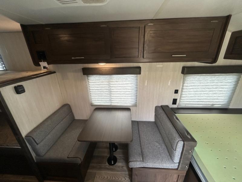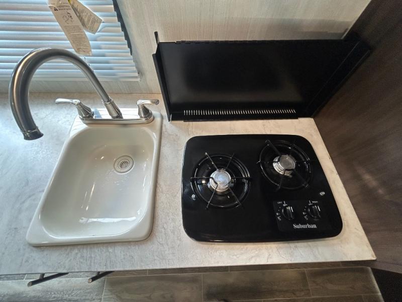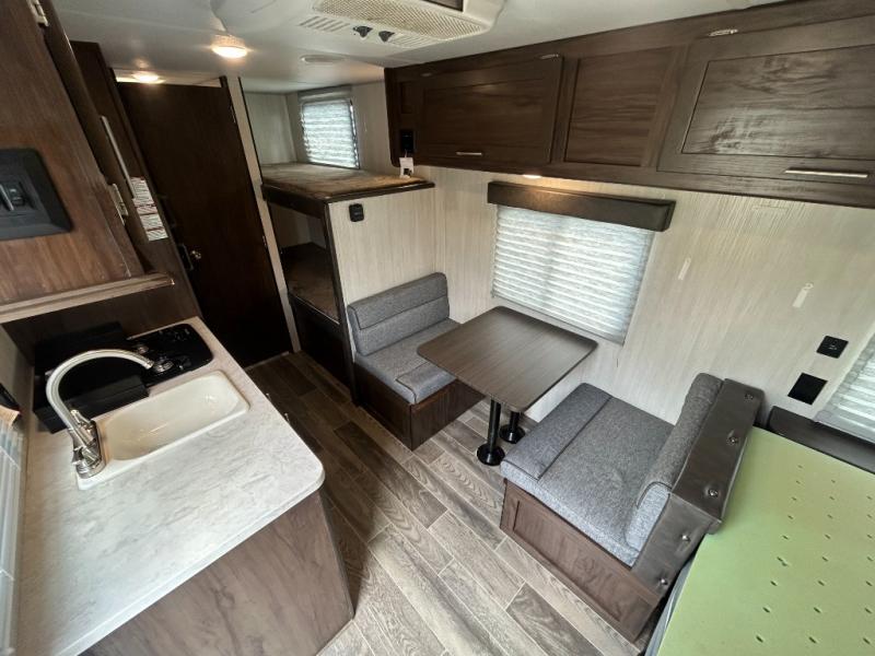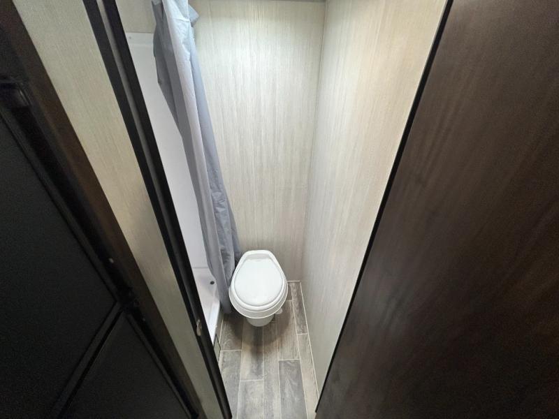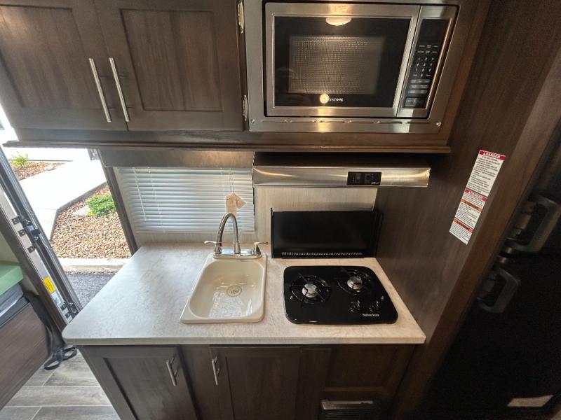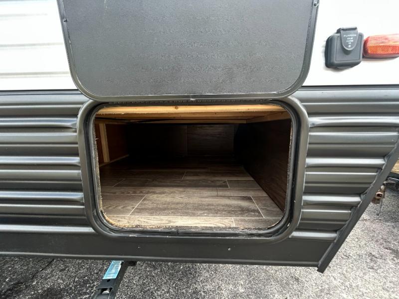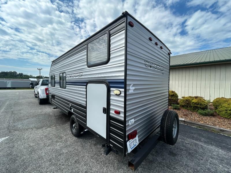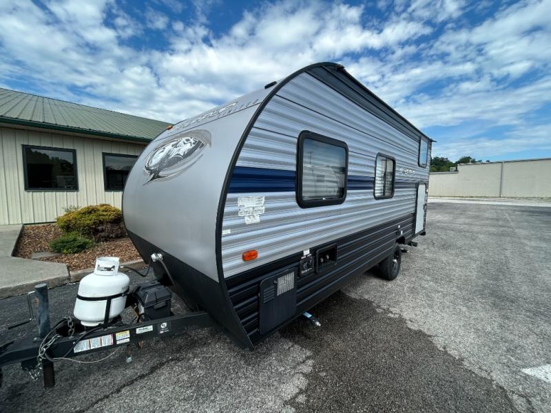 Your family of four will love this travel trailer for your camping adventures. The kids can claim the rear bunk beds and the parents will enjoy the front queen bed. This unit features a two burner cooktop, a refrigerator, and a microwave so you can make meals just like you do at home. You will enjoy the convenience of the rear corner bath with a tub and a shower. Bring along the hiking gear with outside storage in this model. This Cherokee Wolf Pup travel trailer is the one for you!