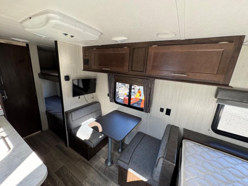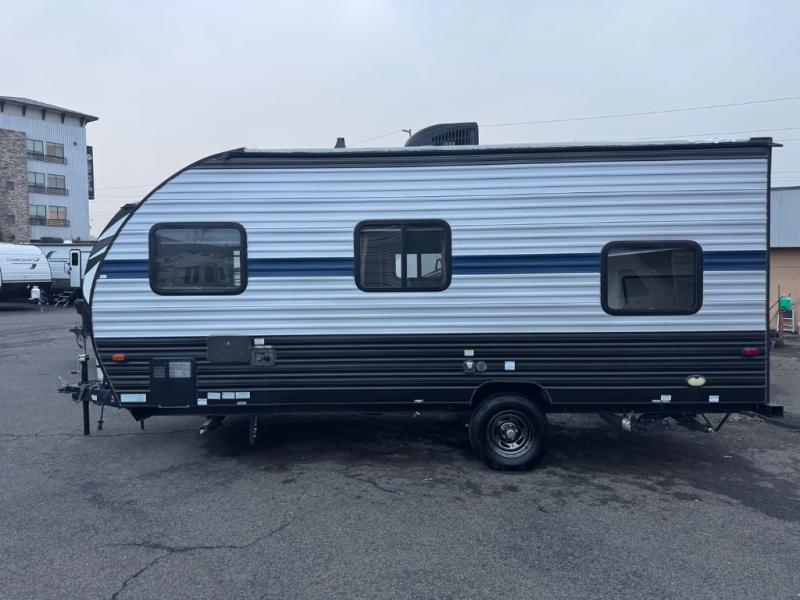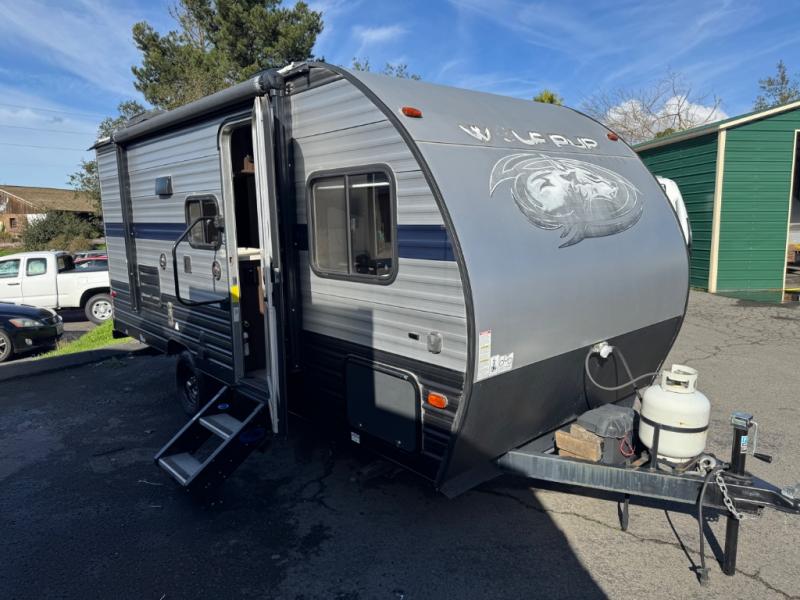LOGHT WEIGHT AND 21 FT OVERALL LENGTHIf you're looking for a great compact, family-friendly camper! The 2019 Forest River Wolf Pup 16BHS is a lightweight travel trailer known for its bunkhouse layout (BHS), sleeping up to 5, with features like a queen bed, dinette, small kitchen (fridge, stove, sink), bath with shower, power awning, LED lighting, and outdoor speakers, all in a compact 21-foot package all under 3600lbs unloaded, you're in luck!