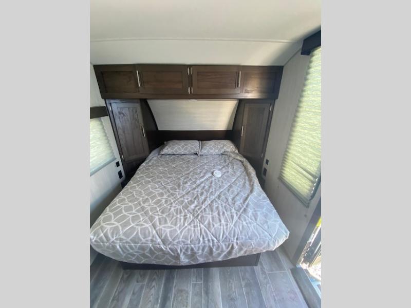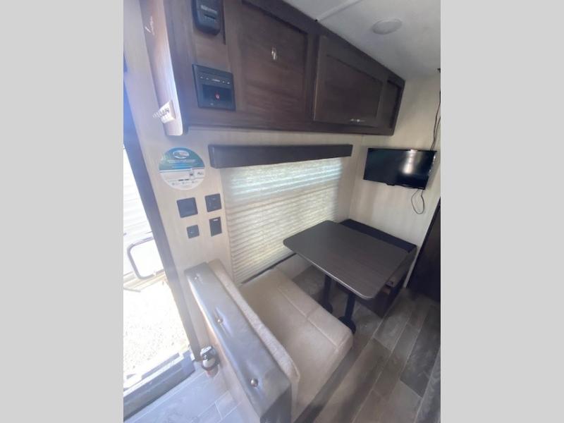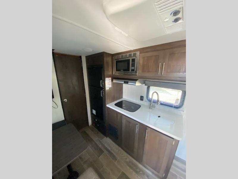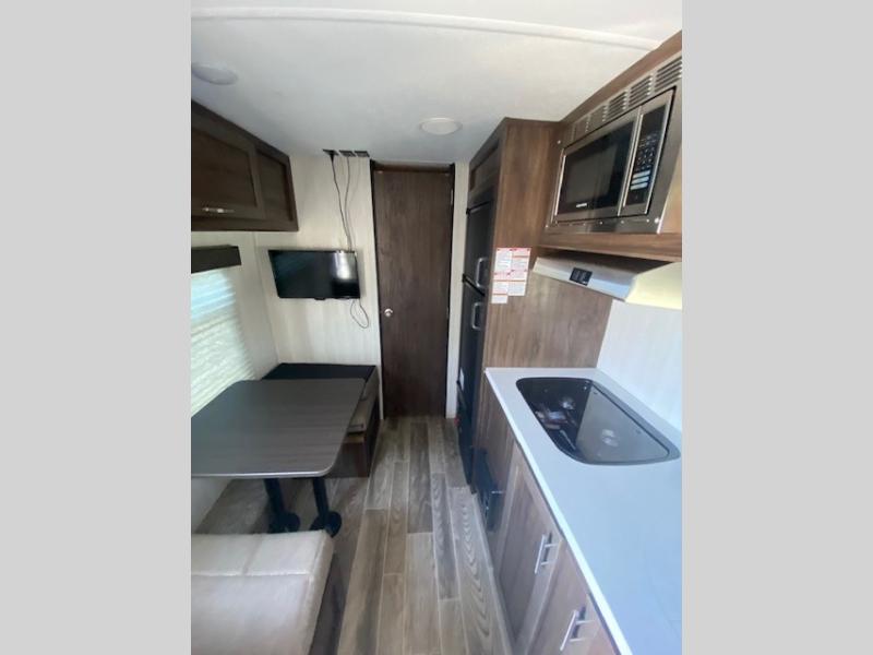 Load up your family of three and see just how easy camping can be when you choose this Cherokee Wolf Pup travel trailer. Make a home cooked meal with a two burner cooktop, or use the microwave for an easy lunch. This unit features a queen bed plus the dinette can convert into additional sleeping space, if needed. After a day of swimming or hiking, clean-up in the rear bath. You'll appreciate the overhead storage throughout this model, as well as outside storage for the lawn chairs! Come check out this travel trailer today!