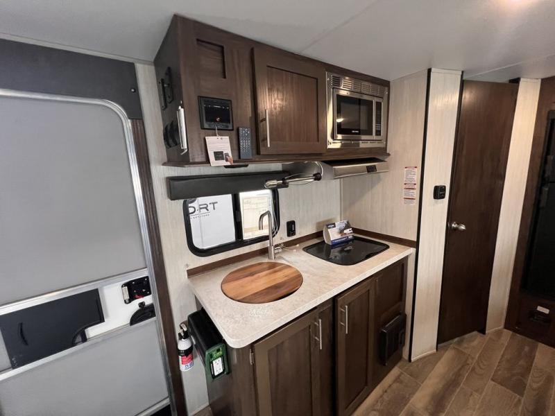 When you choose to camp with a Cherokee Wolf Pup travel trailer, or the toy hauler, you are getting an easily towable lightweight trailer as well as ample room throughout each model. The aerodynamic radius front profile allows for better gas mileage, and the one-piece walkable decked roof allows you to easily clean off the top of your unit after a weekend trip. You'll enjoy features such as an awning with an LED light strip, a high-gloss seamless countertop, and an outside shower with hot and cold water, plus more! With a carbon monoxide detector, safety glass windows, and a smoke detector in each unit, these travel trailers and toy hauler have been constructed with your family's safety in mind. Come select your favorite Wolf Pup model today!