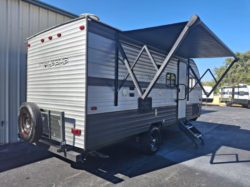 When you choose to camp with a Cherokee Wolf Pup travel trailer, or the toy hauler, you are getting an easily towable lightweight trailer as well as ample room throughout each model. The aerodynamic radius front profile allows for better gas mileage, and the one-piece walkable decked roof allows you to easily clean off the top of your unit after a weekend trip. You'll enjoy features such as an awning with an LED light strip, a high-gloss seamless countertop, and an outside shower with hot and cold water, plus more! With a carbon monoxide detector, safety glass windows, and a smoke detector in each unit, these travel trailers and toy hauler have been constructed with your family's safety in mind. Come select your favorite Wolf Pup model today!