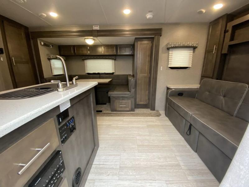 For any camping trip you will want a Flagstaff Micro Lite travel trailer! These models have a beautiful Slatewood interior with Hardwood cabinet doors and drawer fronts. Each unit features solid surface countertops, a three burner range with a glass stove top cover, and a WIFI Ranger Booster Sky 4, so you can stay connected while you camp. Along the exterior there is a fully aluminium frame, a radius roof with interior vaulted ceilings, which provides you the most headroom, plus an outside shower, and a power awning with LED lights. The Standard Package D offers features such as a fully enclosed underbelly, outside speakers, a multi zone stereo with DVD/CD/AM/FM and Bluetooth control, plus so much more!