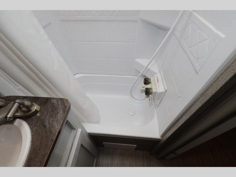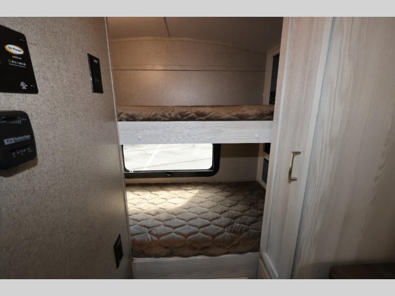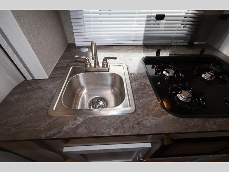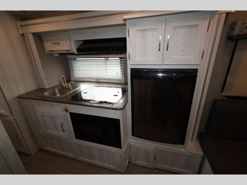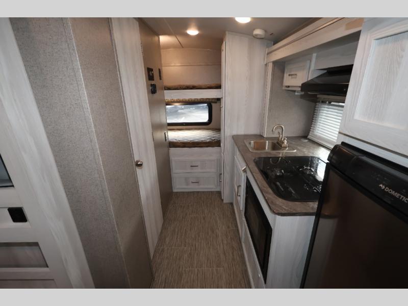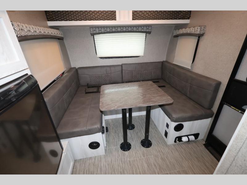 For the camping enthusiast that enjoys inside comforts but doesn't stay inside much, take a look at this Flagstaff E-Pro travel trailer today! You have the choice of sleeping on one of the two bunk beds or the U-shaped dinette when it's folded down for the night. You can cook inside on the recessed cooktop with flush-mount cover or in the microwave located on the single slide that provides more floor space to prepare meals. The full bath allows you to wash up after a fun day outdoors without having to use the campsite facilities, and you will find storage inside as well as outside, plus there is an outdoor gas grill and mini refrigerator!