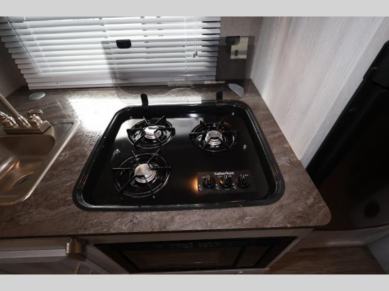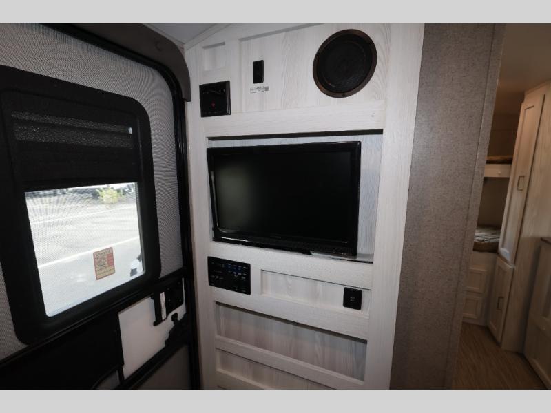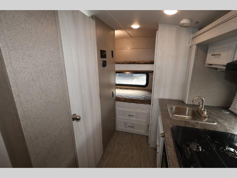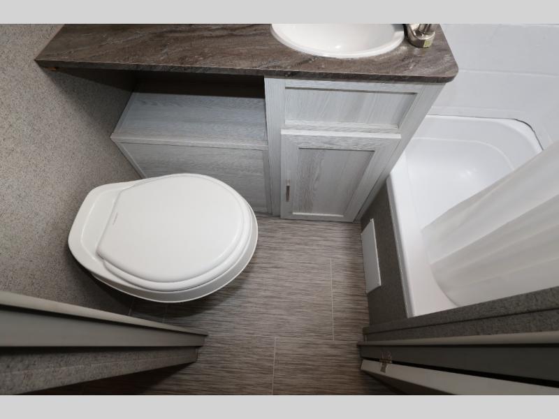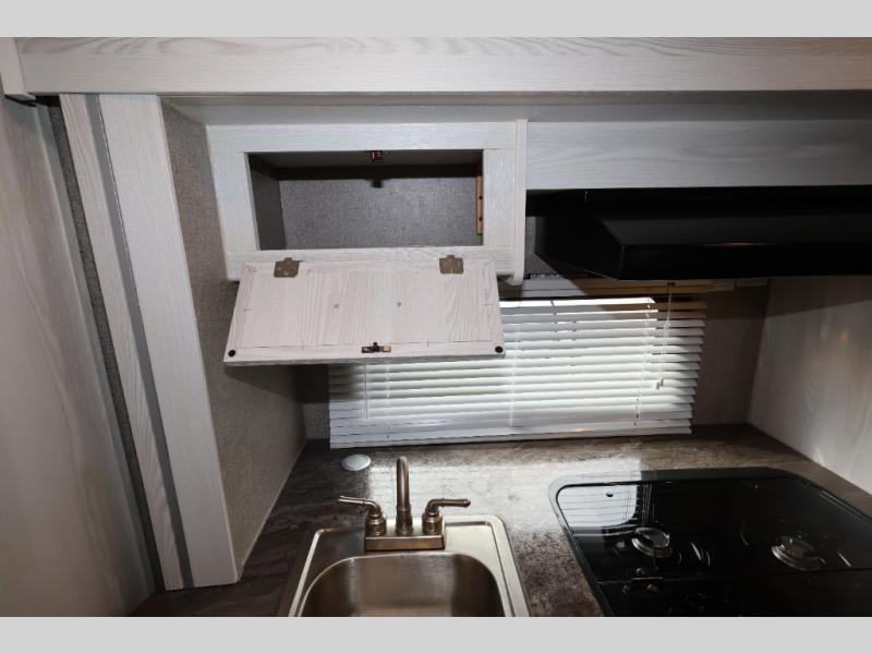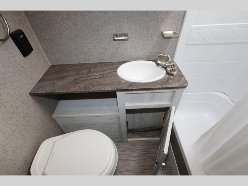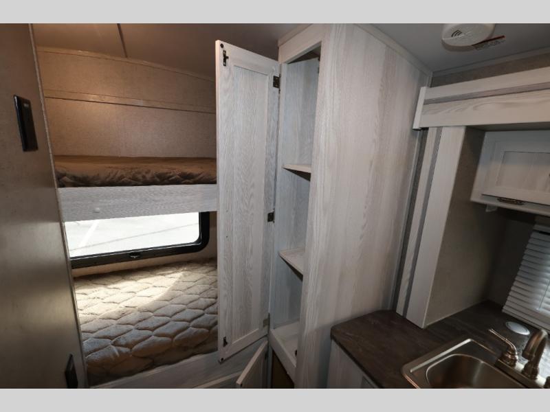 For the camping enthusiast that enjoys inside comforts but doesn't stay inside much, take a look at this Flagstaff E-Pro travel trailer today! You have the choice of sleeping on one of the two bunk beds or the U-shaped dinette when it's folded down for the night. You can cook inside on the recessed cooktop with flush-mount cover or in the microwave located on the single slide that provides more floor space to prepare meals. The full bath allows you to wash up after a fun day outdoors without having to use the campsite facilities, and you will find storage inside as well as outside, plus there is an outdoor gas grill and mini refrigerator!