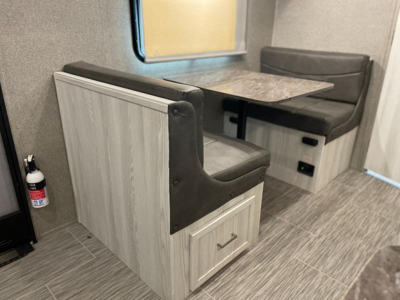Ready, set, camp! For the camping enthusiast this Flagstaff E-Pro travel trailer by Forest River is ideal for you! You get to choose if you want to sit on the sofa or sleep on the Murphy bed whenever you like. You also have a booth dinette for extra seating and sleeping space. The rear full bath allows you to wash up after a fun day outdoors without having to use the public facilities, and you can cook inside on the recessed cooktop with flush-mount cover and in the microwave or outside on the gas grill.
