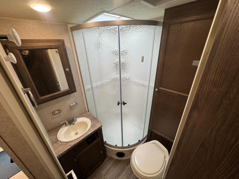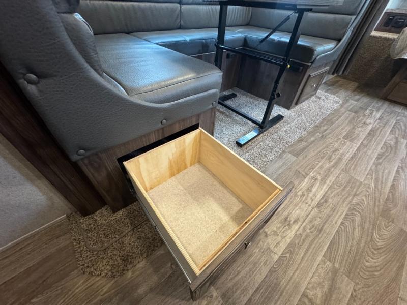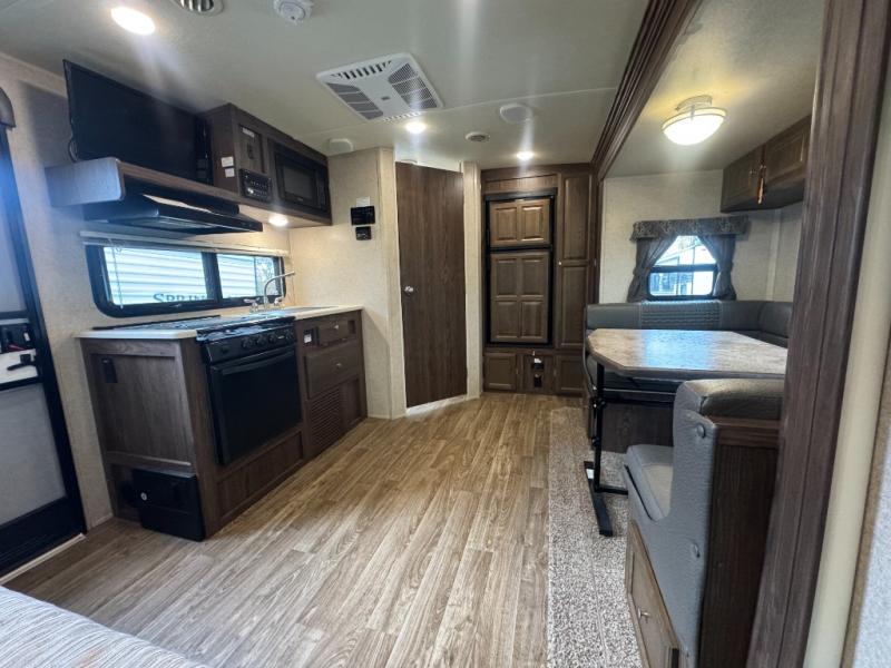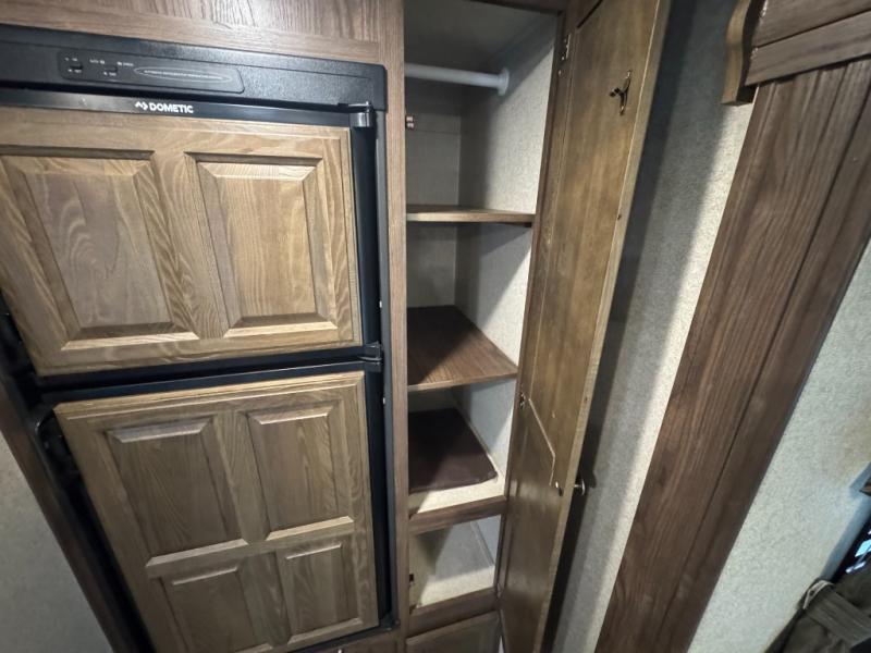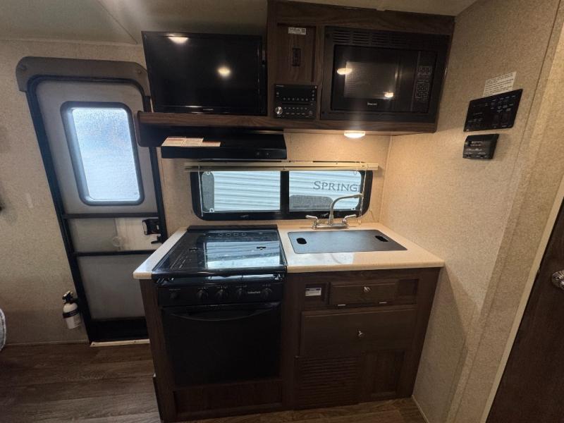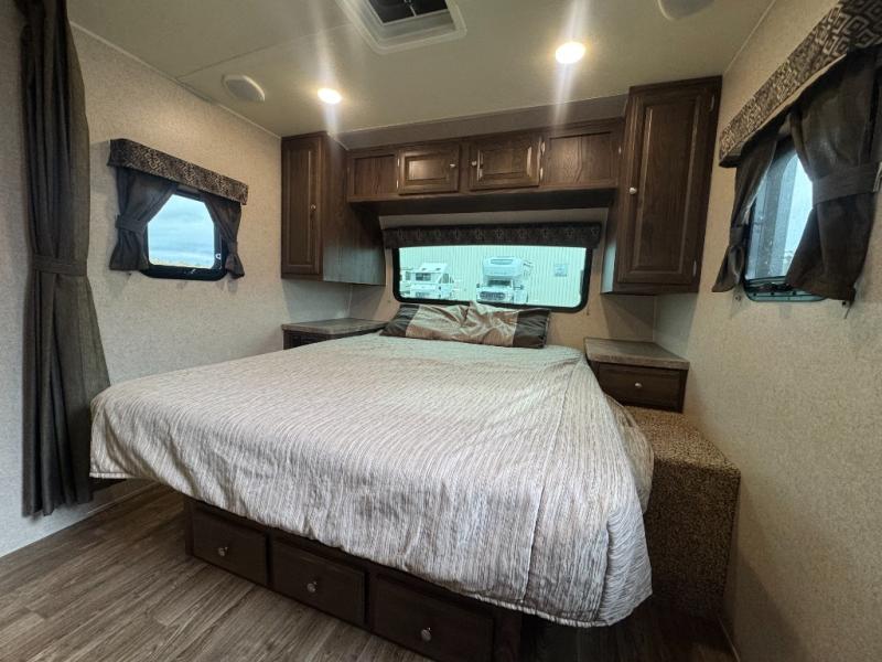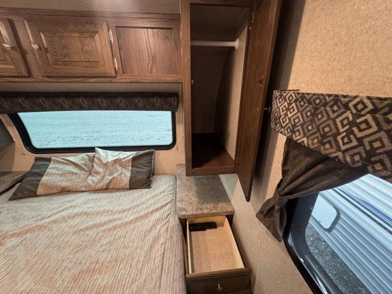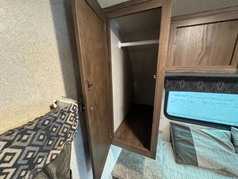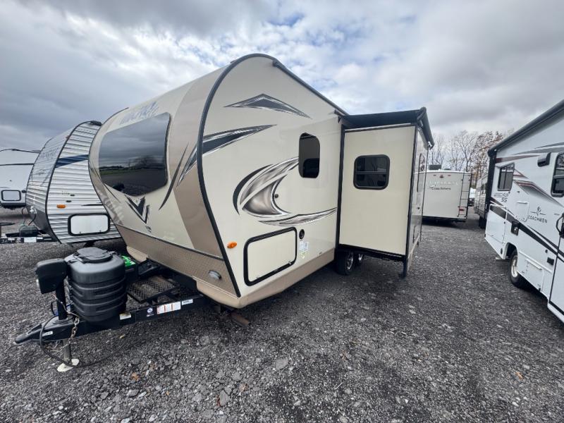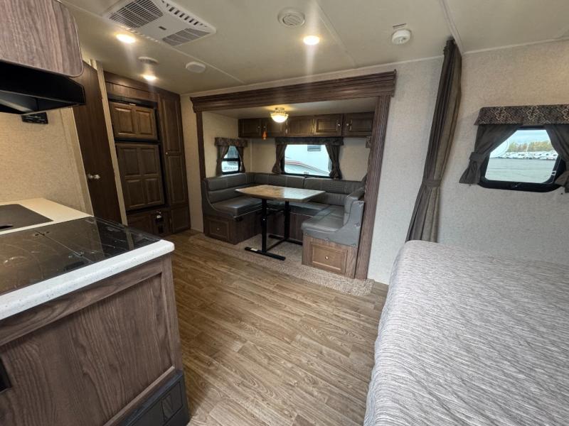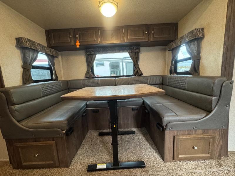 Pack your bags and get ready for your next camping trip with this travel trailer. You will enjoy the space the slide out provides, and within the slide, there is a U-shaped dinette where you can enjoy your meals or this area can double as additional sleeping space. Fold out the Murphy bed each night for a good night's rest and in the morning, you can fold it away and enjoy a cup of coffee on the sofa. This unit features a kitchen with a three burner cooktop, a microwave, and you'll appreciate a pantry for snacks. Bring along the extra lawn chairs with a pass through storage included in this travel trailer, plus there is an exterior storage for your luggage or tackle boxes. After a day hiking, clean up in the convenient rear corner bath. Make this travel trailer yours today!