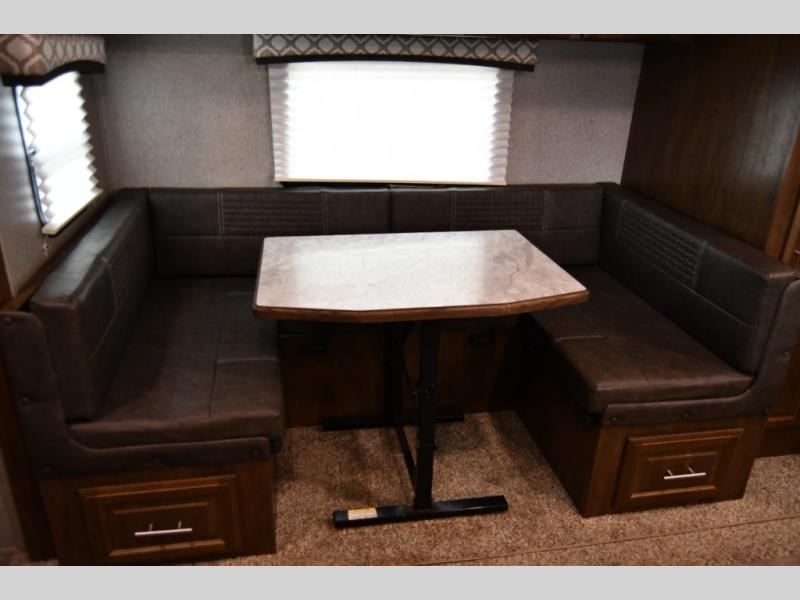 The 21DS floorplan delivers an open and inviting interior that makes the most of every inch. A slide-out expands the living space, creating a comfortable area to relax, dine, or entertain. Large windows bring in natural light, giving the trailer a bright, airy feel that enhances every camping experience.
