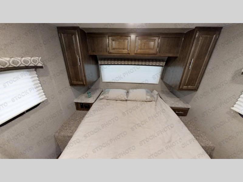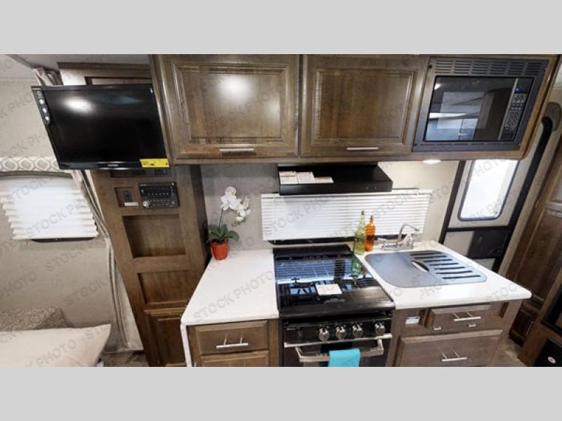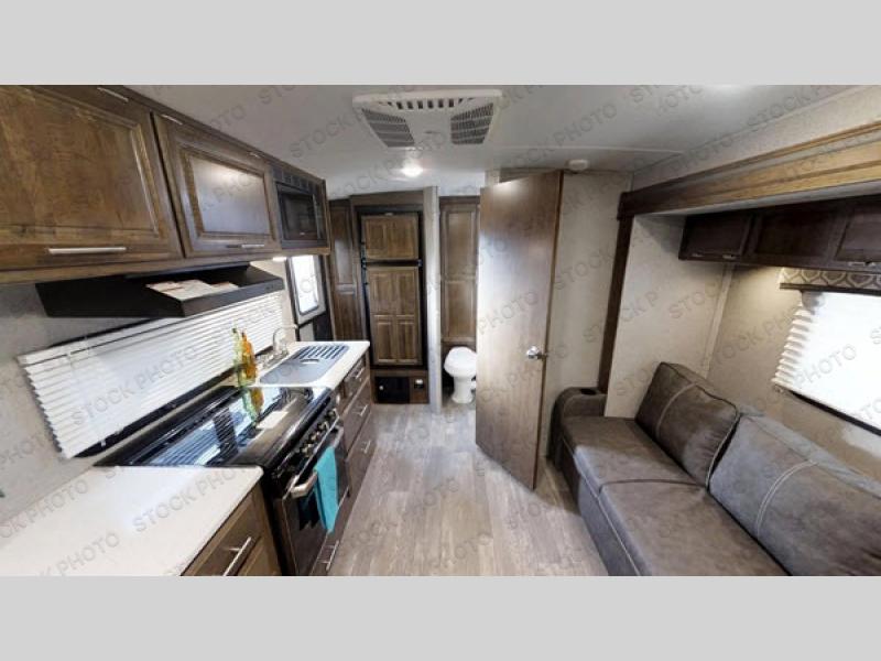 For the couple who is ready to get out and enjoy nature, this travel trailer is ideal for you! This unit has all of the basic amenities from the rear corner bath with a radius shower, to the front queen bed that makes for a comfy night's rest. The slide out with the sofa provides extra interior space so you won't feel cramped. You'll also be able to enjoy your meals here with a table in front of the sofa. After swimming all day working up your appetite, come back to this unit and cook a meal on the three burner cooktop, or take the prep outside and use the outside gas grill! This travel trailer features a pass through storage for your larger camping items, plus an exterior storage can hold the kids' outdoor games.