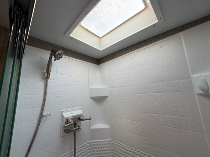 - Full bathroom eliminates the need for campground facilities