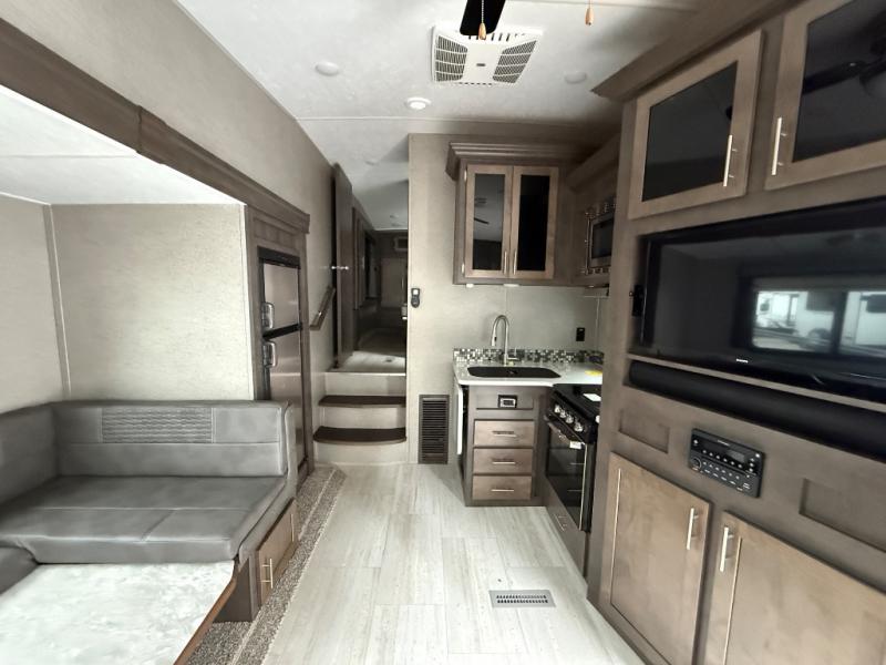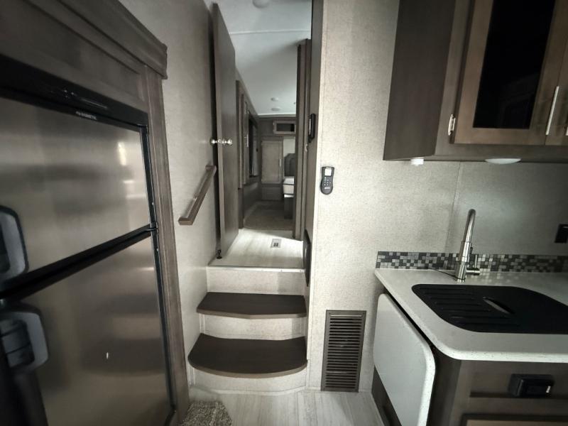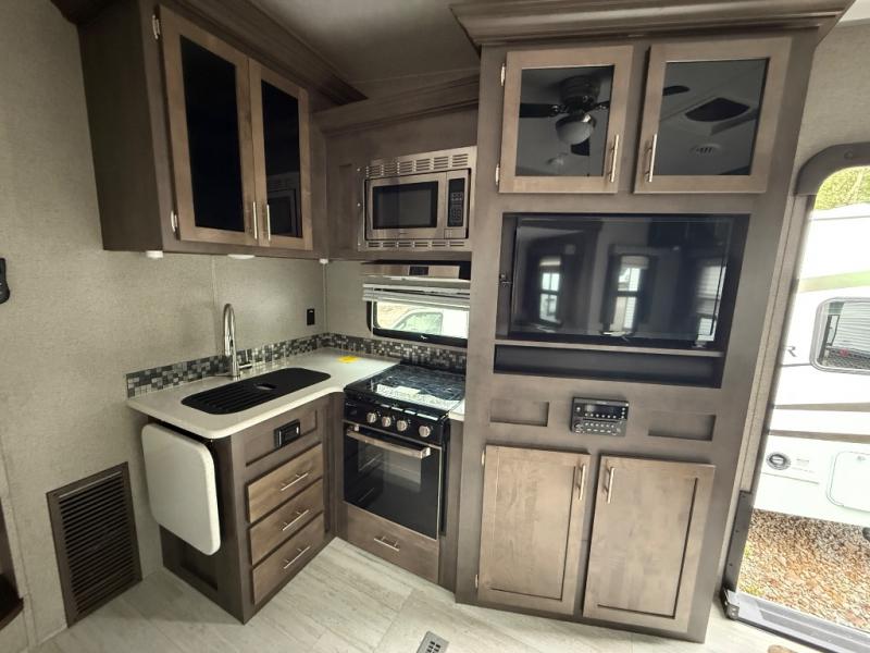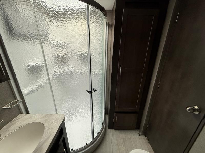 It will be easy to make plenty of memories with your family when you choose to camp with a Flagstaff Super Lite fifth wheel by Forest River. These models have beautiful slatewood cabinetry with solid wood cabinet doors and drawers, a LCD TV with an upgraded soundbar speaker system, and flush mount ceiling LED 12 volt interior lighting with multiple switches. The 6 sided aluminum cage construction offers lightweight towing, the radius roof with interior vaulted ceilings give you more headroom, the WiFi ranger Sky 4, the enclosed underbelly, and the power awning with adjustable rain dump and LED light strip, will give you years of enjoyment!