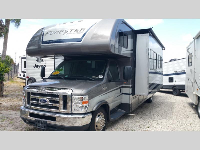 These Forest River Forester motorhome class C's are what you should be looking at when it comes to tasteful style and design. The split level design allows you to have a 7' ceiling in the living area and pass through storage underneath. The side view and back-up cameras will come in handy when parking your RV into your campsite. The inside of these motorhomes also have some beautiful colors to choose from that will make you feel like you are at home. You will enjoy whipping up your best meals with all of the stainless steel appliances, solid countertops, and even a microwave oven. All of the Foresters are "Certified Green" by TRA Certification.