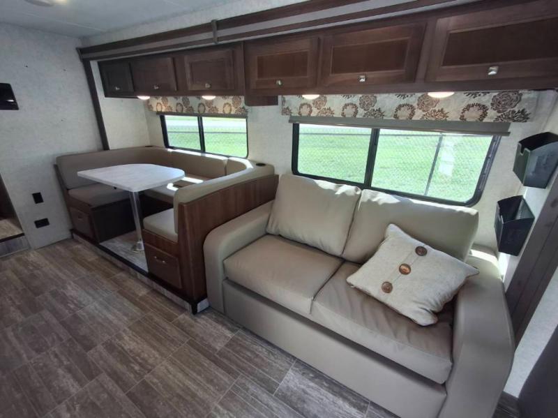 This Forester motorhome is perfect for your next tailgate party! There is plenty of space in the living area thanks to the large slide out along the roadside. Outside you have a 15' 6" awning, just open it up, add a few lawn or camping chairs and enjoy your party. If there isn't a game on the weekend, drive this unit to your favorite campground and set up. The private bedroom is perfect when you have guests, so everyone gets some privacy at night. The U-shaped dinette and the sofa also fold down into some sleeping space at night. Don't forget about the bunk over the cab can sleep up to two individuals as well!