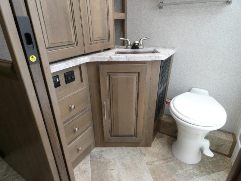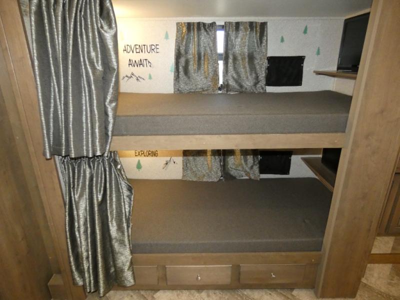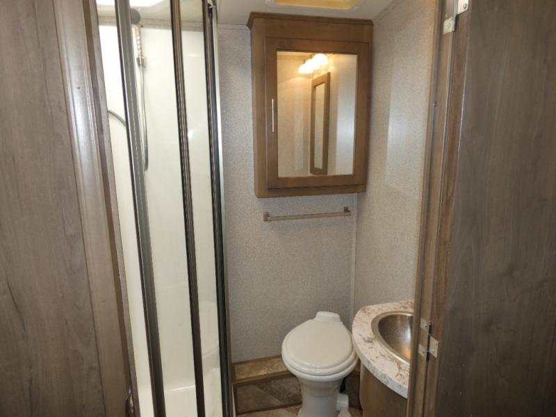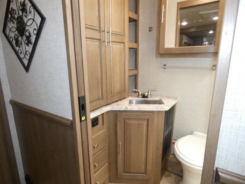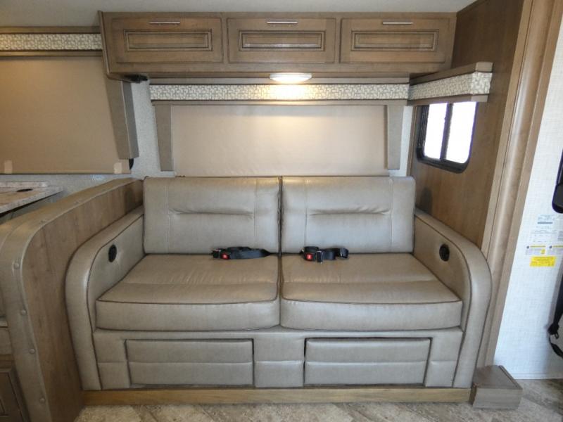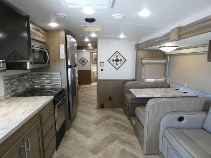 If you are looking to take the whole family on a road trip, then let this 36B5 Georgetown 5 Series class A gas motorhome by Forest River answer your call. This model is one of the more family-friendly models on the market with two full bathrooms and sleeping space for seven people. In the bedroom there is a king bed, and across the room you can watch a movie or your favorite show on the 32" LED TV. Your kids will enjoy their own space with the bunk beds too. The front living area is a nice place to plan out your day of fun and adventure. Here you will find a sofa and a Dream Dinette which both easily convert into additional sleeping space. If mom or dad have a little computer work to catch up on while you are away from home, then the passenger work station is sure to be a favorite spot!