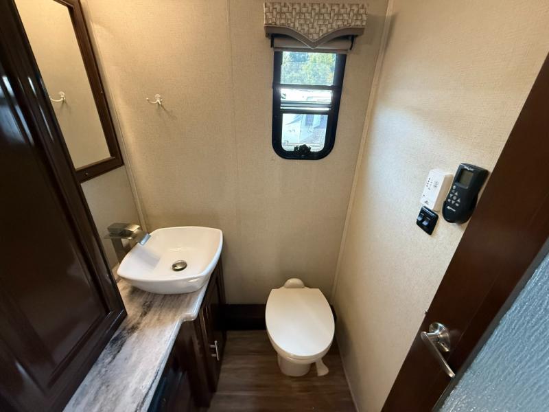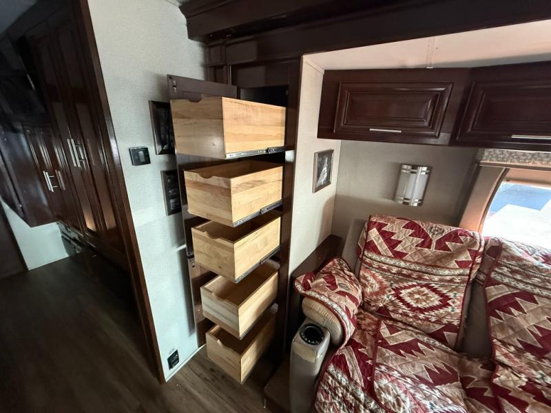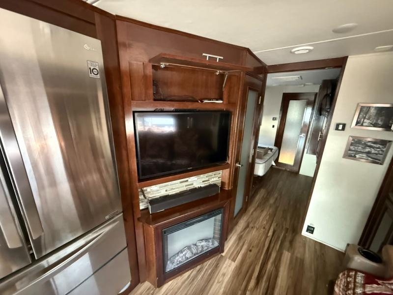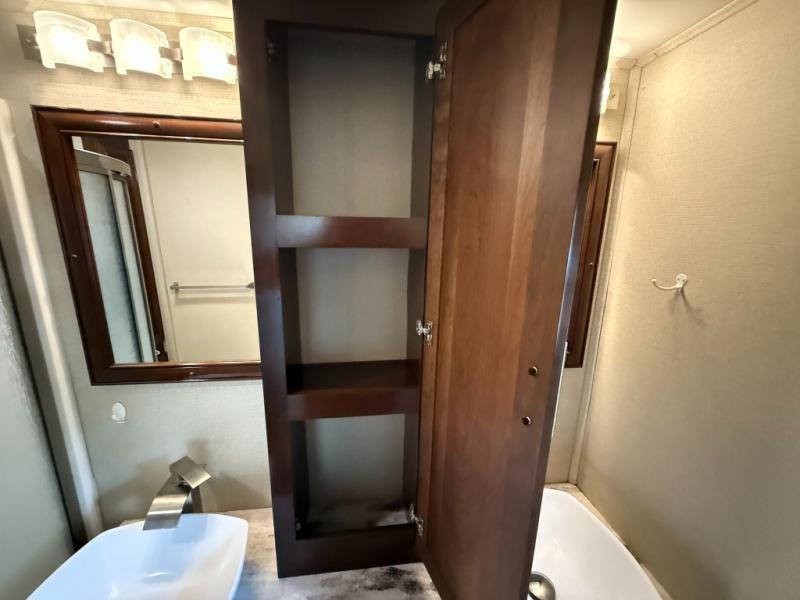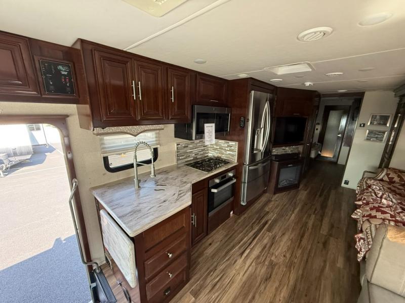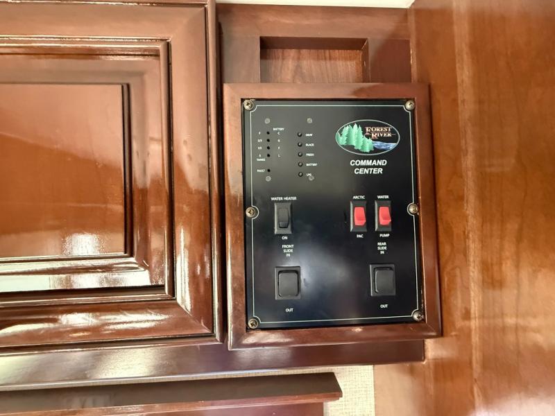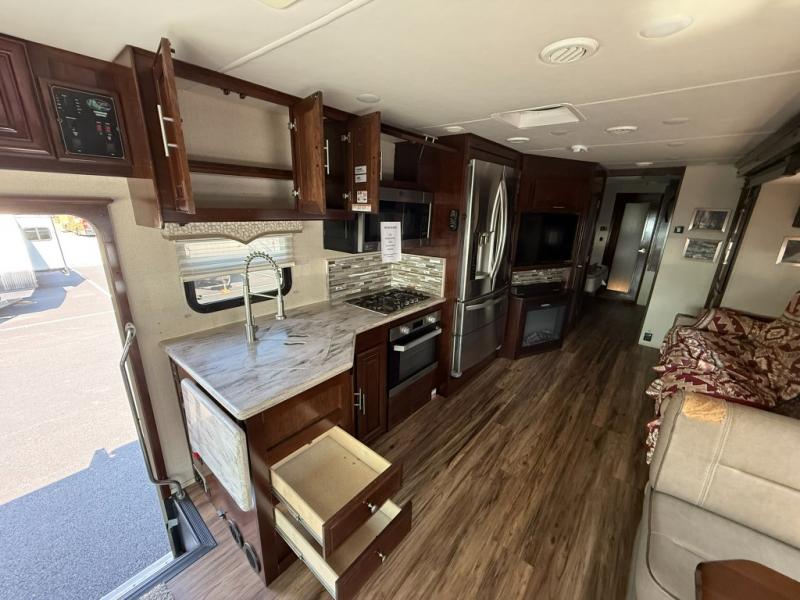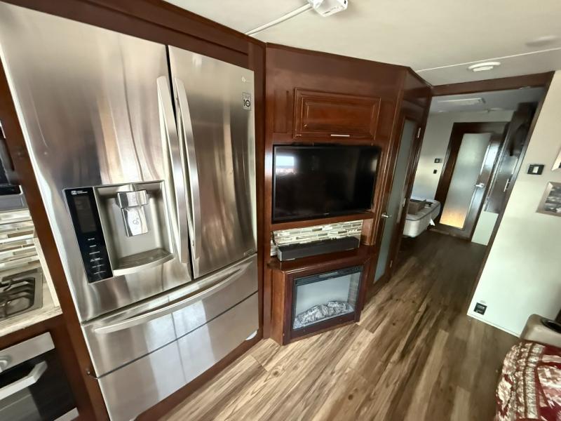 Step inside this Georgetown XL Class A gas motorhome to find comfort and luxury with two slides, sleeping space for five, plus a bath and a half with a dual-sink vanity in the master bathroom! In the evening you can plan to have a fire in the fireplace and watch TV on the 40" LED TV while relaxing on the four-person theater seating. The kitchen has all of the amenities that you would find at home with the stainless steel residential refrigerator, three-burner range, and microwave. You will also find that this model has been prepped for an optional washer and dryer so that you can keep up with your laundry while you are away from home.