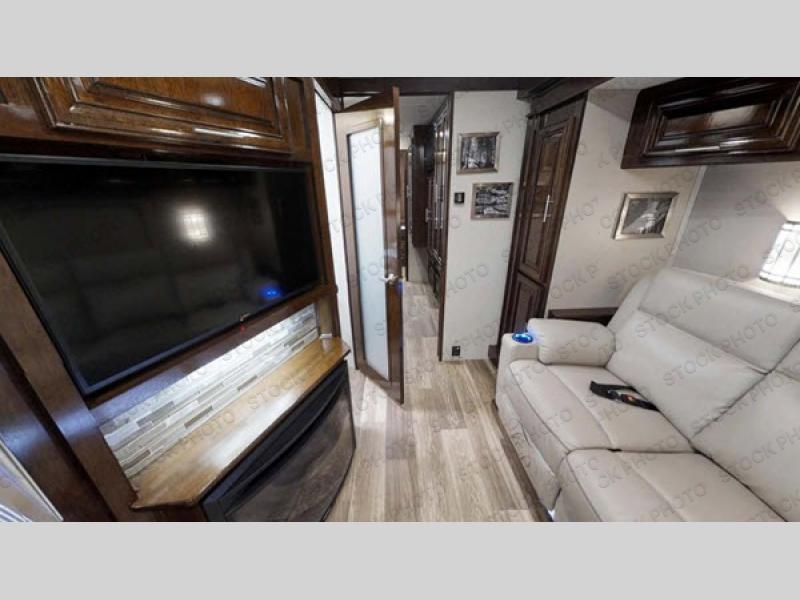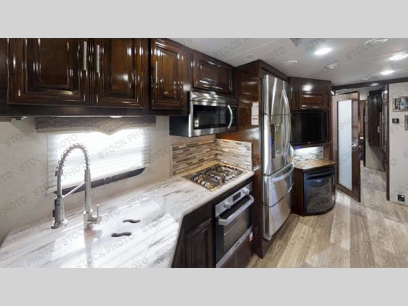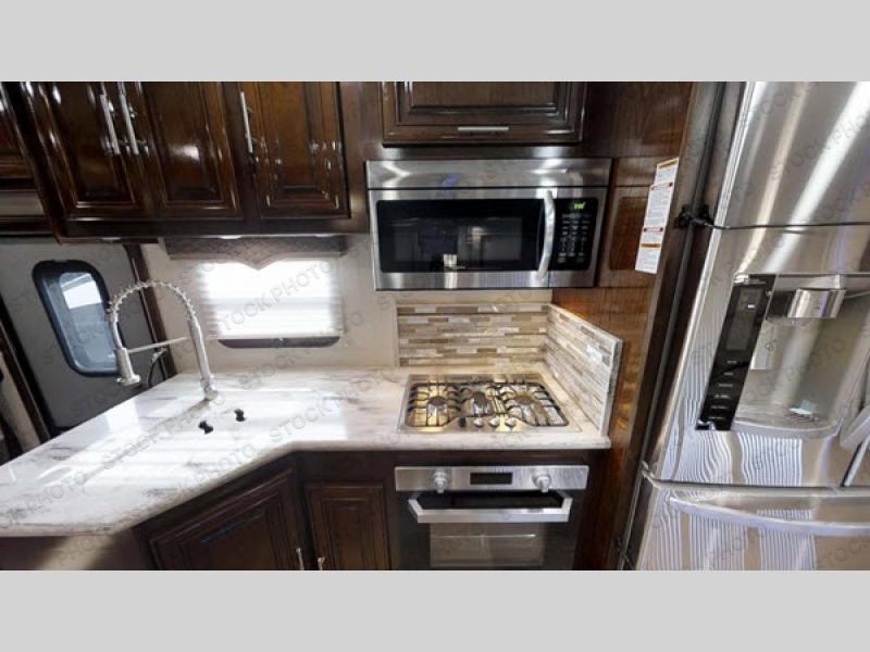 Step inside this Georgetown XL Class A gas motorhome to find comfort and luxury with two slides, sleeping space for five, plus a bath and a half with a dual-sink vanity in the master bathroom! In the evening you can plan to have a fire in the fireplace and watch TV on the 40" LED TV while relaxing on the four-person theater seating. The kitchen has all of the amenities that you would find at home with the stainless steel residential refrigerator, three-burner range, and microwave. You will also find that this model has been prepped for an optional washer and dryer so that you can keep up with your laundry while you are away from home.