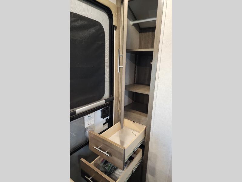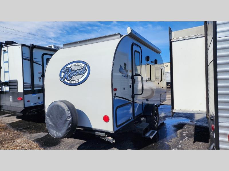 For a sturdy one-of-a-kind travel trailer, choose the R Pod by Forest River. Along the exterior you will find a one piece fiberglass roof, custom tinted safety glass windows, and convenient magnet baggage door catches. Inside each model you will enjoy Designer Carefree flooring, residential style shaker cabinets, hardwood drawer fronts with full extension ball bearing drawer glides, plus decorative window treatments to give you an at-home feel. These trailers are ready to go when you are! Come select your R-Pod today!
