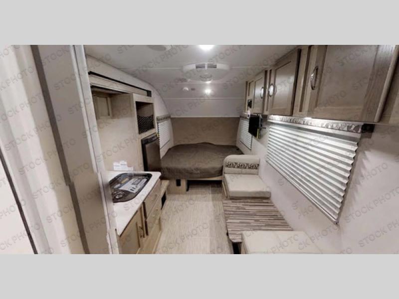 Get ready to travel just about anywhere with this lightweight R-Pod travel trailer! This model is ideal for any couple. There is sleeping space on the front queen bed and the 24" x 75" dinette can easily convert into a sleeping spot for a child. The slide out along the roadside helps open up the floor space, plus you will find all of the kitchen amenities here. The spacious full rear bath has plenty of room to easily get ready for any adventure that lies ahead. You will also enjoy all of the exterior storage for all of your outdoor camping gear! This unit also includes a TV for movie nights!
