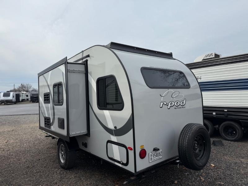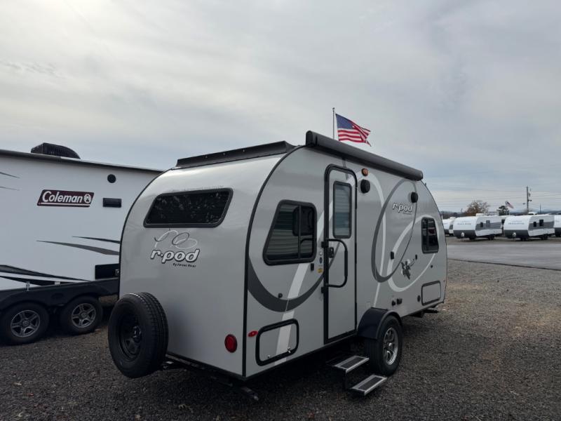 For a sturdy one-of-a-kind travel trailer, choose the R-Pod by Forest River. Along the exterior you will find a powder coated steel frame, custom tinted safety glass windows, and convenient magnet baggage door catches. Inside each model you will enjoy Designer Carefree flooring, hardwood drawer fronts with full extension ball bearing drawer glides, plus decorative window treatments to give you an at-home feel. Only the West coast models feature the Hood River Edition, which includes, advanced ground clearance, X-Treme 15" off road tires, aluminum rims and MaxxAir vent cover. These trailers are ready to go when you are! Come select your R-Pod today!