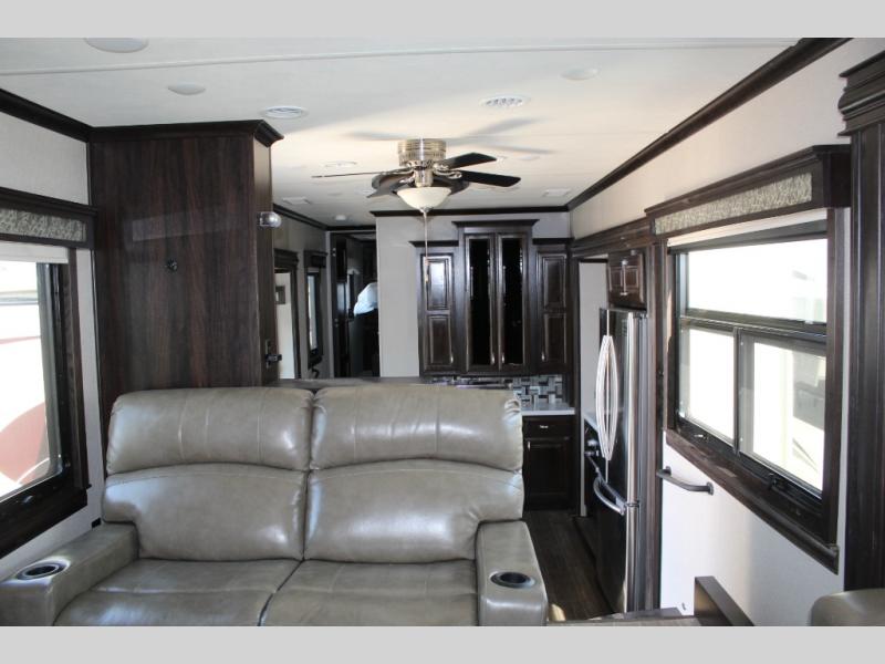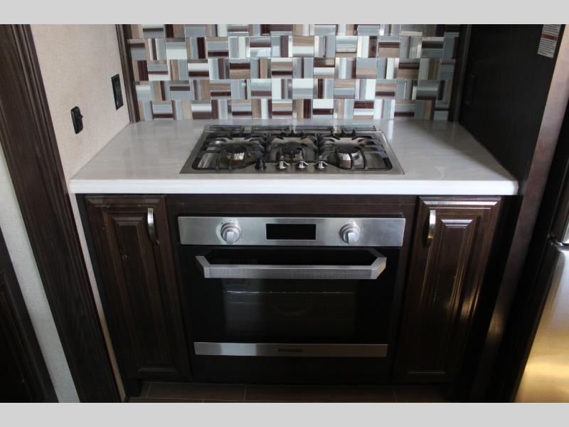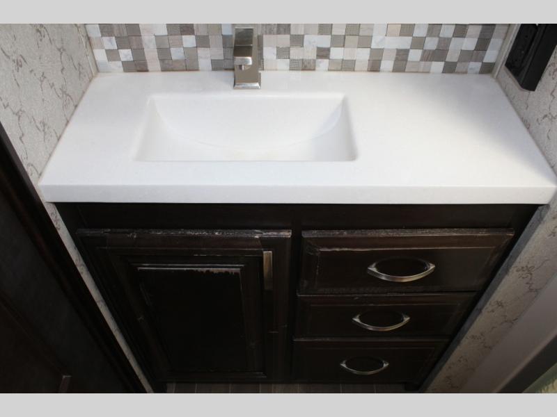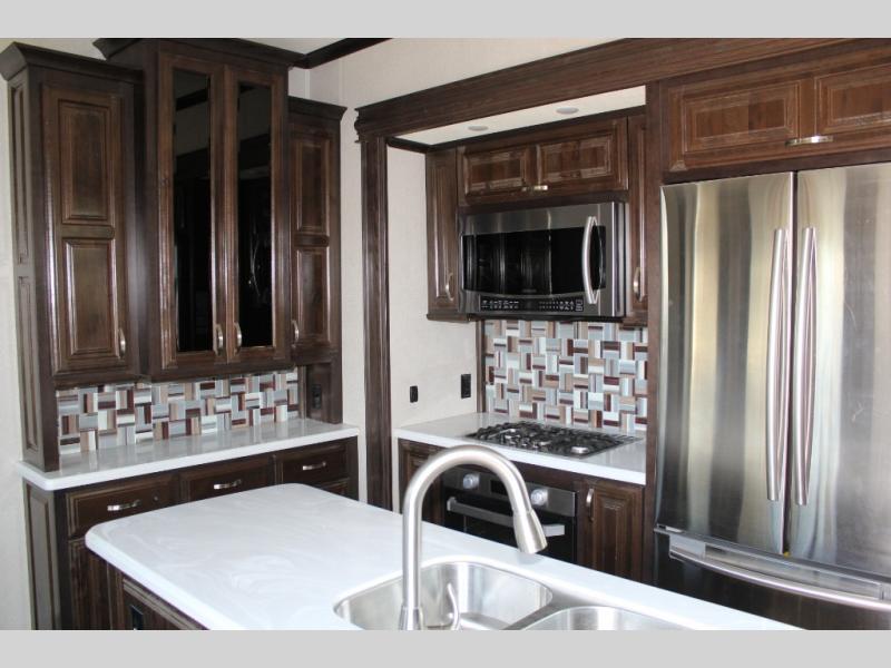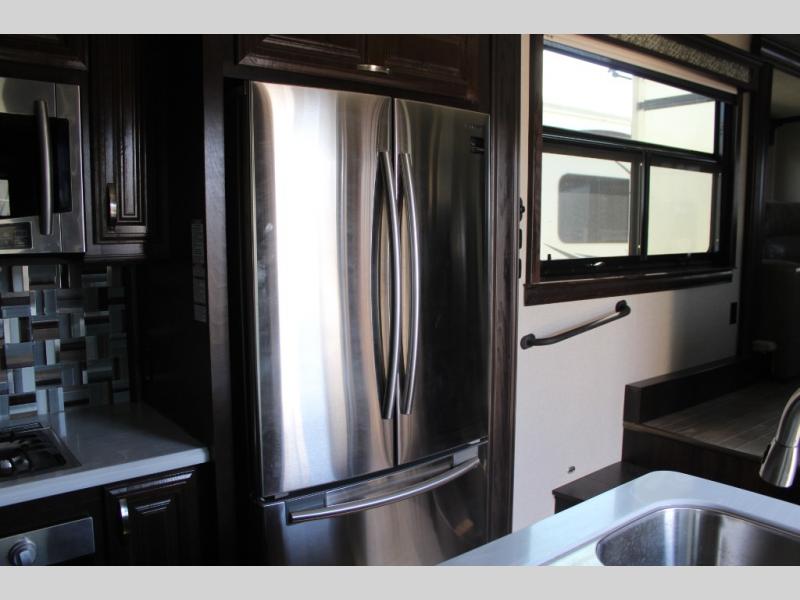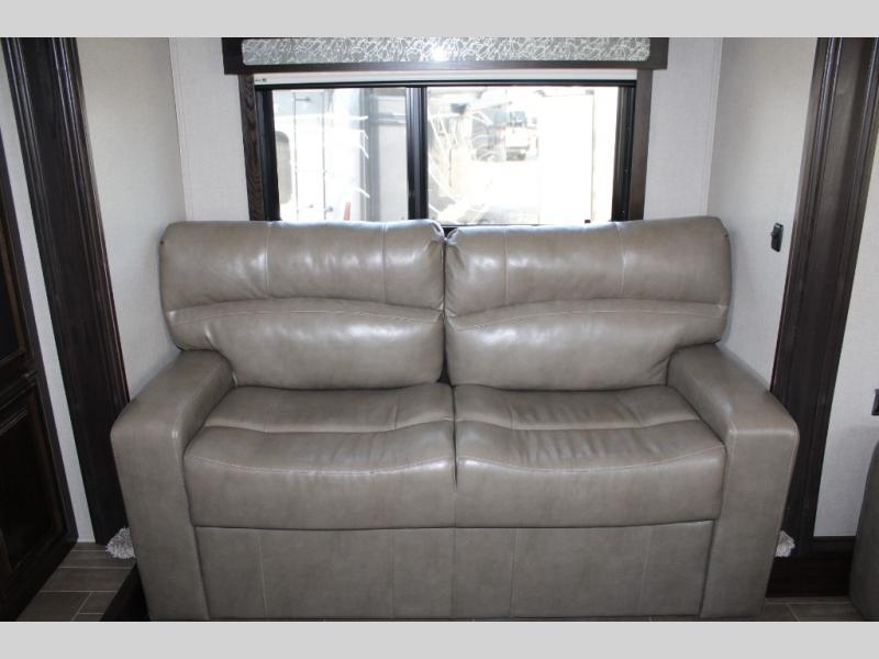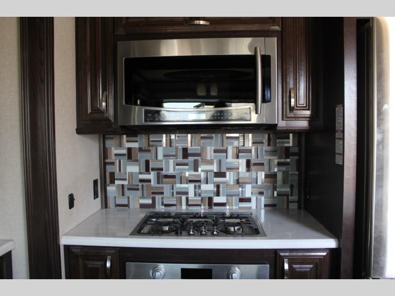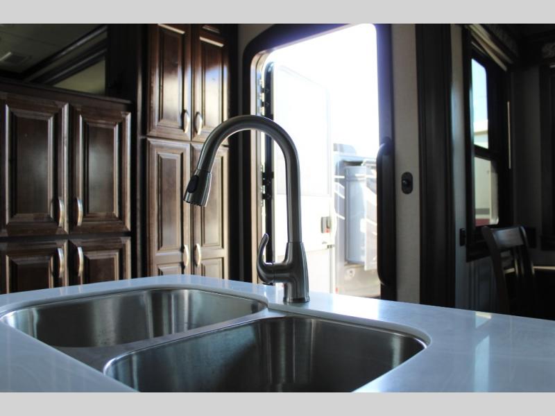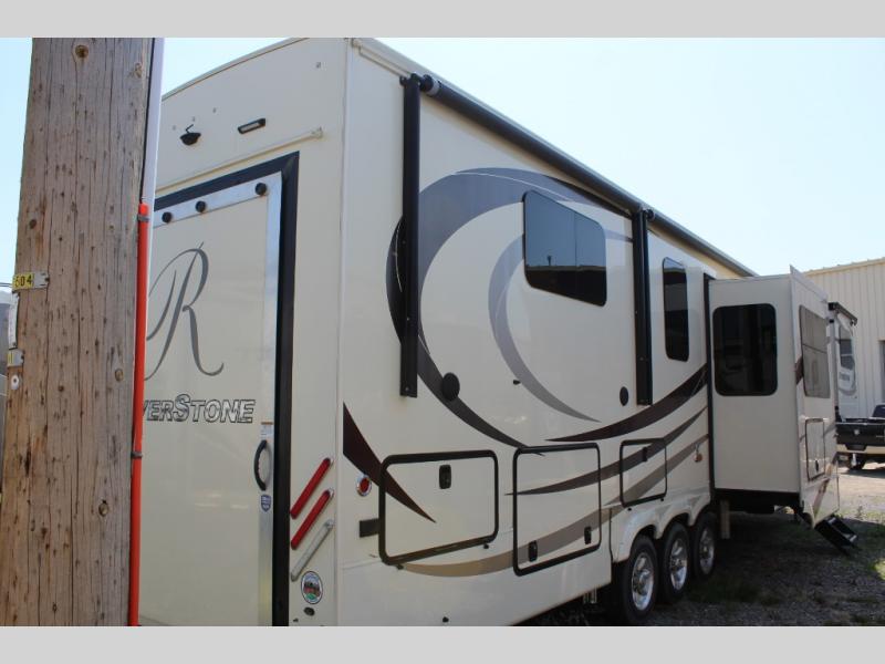 Get ready to camp in luxury when you choose a Riverstone fifth wheel! These models feature residential style insulation as well as roof and flooring touts with an R-38 insulation value which is designed for full time living throughout the country! Inside each model there is a 60" LED Smart TV as well as plenty of residential touches from the Shaw vinyl flooring to the large stainless steel kitchen sinks. There is beautiful upgraded Corian solid surface counter tops in the kitchen and a central vacuum system which makes cleaning up so much easier. The mandatory Riverstone Luxury Package has features such as a Splendid "Astral" stackable washer and dryer, a large infinity light over the kitchen island, plus a Fischer Paykal dishwasher. Come see for yourself why the Riverstone is desired by many for the luxury and convenience it offers.