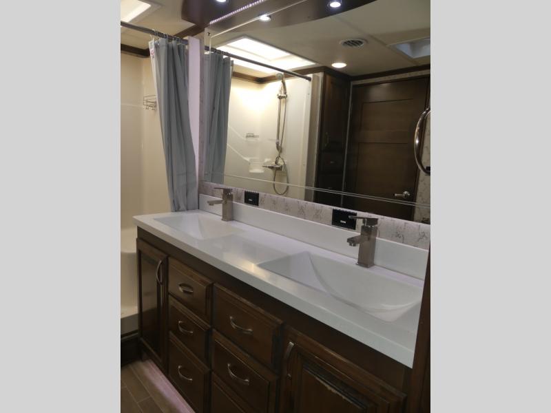 Get ready to camp in luxury when you choose a RiverStone fifth wheel! These models feature residential style insulation as well as roof and flooring touts with an R-38 insulation value which is designed for full time living throughout the country! Inside each model there is a 60" LED Smart TV as well as plenty of residential touches from the Shaw vinyl flooring to the large stainless steel kitchen sinks. There is beautiful upgraded Corian solid surface counter tops in the kitchen and a central vacuum system which makes cleaning up so much easier. The mandatory RiverStone Luxury Package has features such as a Splendid "Astral" stackable washer and dryer, a large infinity light over the kitchen island, plus a Fischer Paykal dishwasher. Come see for yourself why the RiverStone is desired by many for the luxury and convenience it offers.
