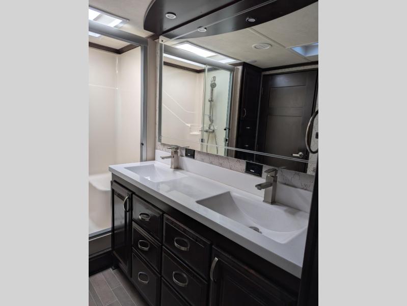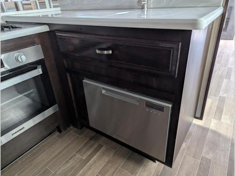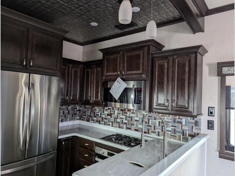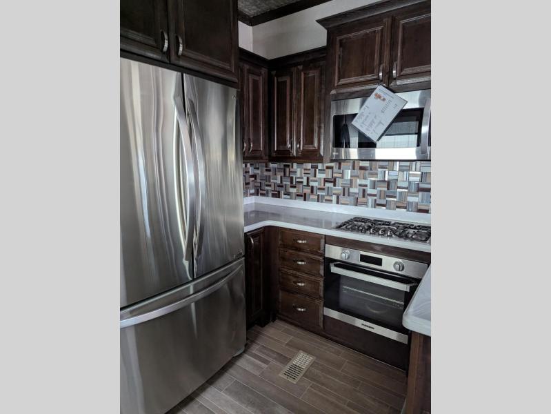 Get ready to camp in luxury when you choose a RiverStone fifth wheel! These models feature residential style insulation as well as roof and flooring touts with an R-38 insulation value which is designed for full time living throughout the country! Inside each model there is a 60" LED Smart TV as well as plenty of residential touches from the Shaw vinyl flooring to the large stainless steel kitchen sinks. There is beautiful upgraded Corian solid surface counter tops in the kitchen and a central vacuum system which makes cleaning up so much easier. The mandatory RiverStone Luxury Package has features such as a Splendid "Astral" stackable washer and dryer, a large infinity light over the kitchen island, plus a Fischer Paykal dishwasher. Come see for yourself why the RiverStone is desired by many for the luxury and convenience it offers.