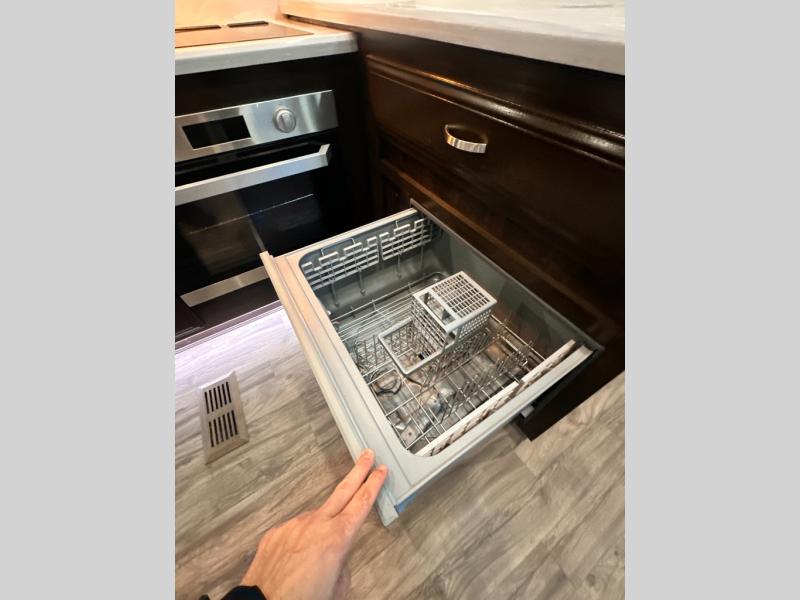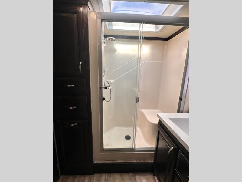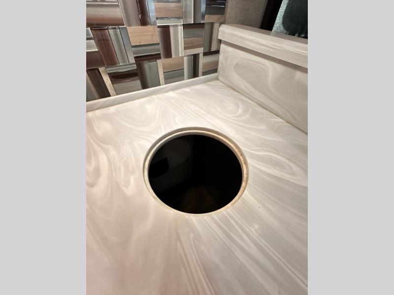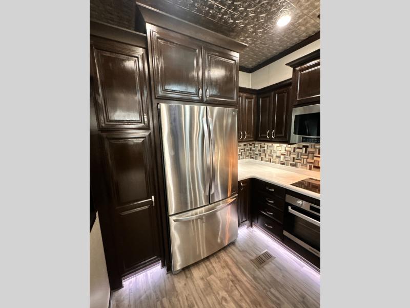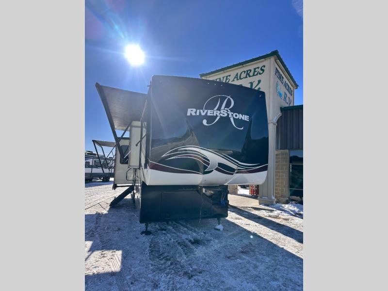 Get ready to camp in luxury when you choose a RiverStone fifth wheel! These models feature residential style insulation as well as roof and flooring touts with an R-38 insulation value which is designed for full time living throughout the country! Inside each model there is a 60" LED Smart TV as well as plenty of residential touches from the Shaw vinyl flooring to the large stainless steel kitchen sinks. There is beautiful upgraded Corian solid surface counter tops in the kitchen and a central vacuum system which makes cleaning up so much easier. The mandatory RiverStone Luxury Package has features such as a Splendid "Astral" stackable washer and dryer, a large infinity light over the kitchen island, plus a Fischer Paykal dishwasher. Come see for yourself why the RiverStone is desired by many for the luxury and convenience it offers.