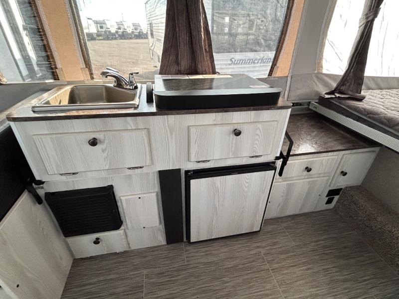 Hop into this Forest River Rockwood Freedom 2280 pop-up camper for your next camping adventure! It features a swing galley that allows you to set your sink on either the floor while traveling while the camper is down or on top of the sink base while in use. The gaucho sofa provides a seating area during the day and a sleeping area at night. If you choose the optional shower with cassette port-a-pottie then you can enjoy the convenience of having your own bathroom. You can prepare delicious burgers on the outdoor gas grill.