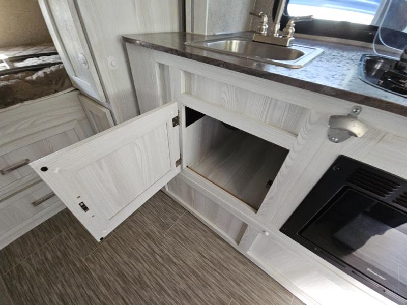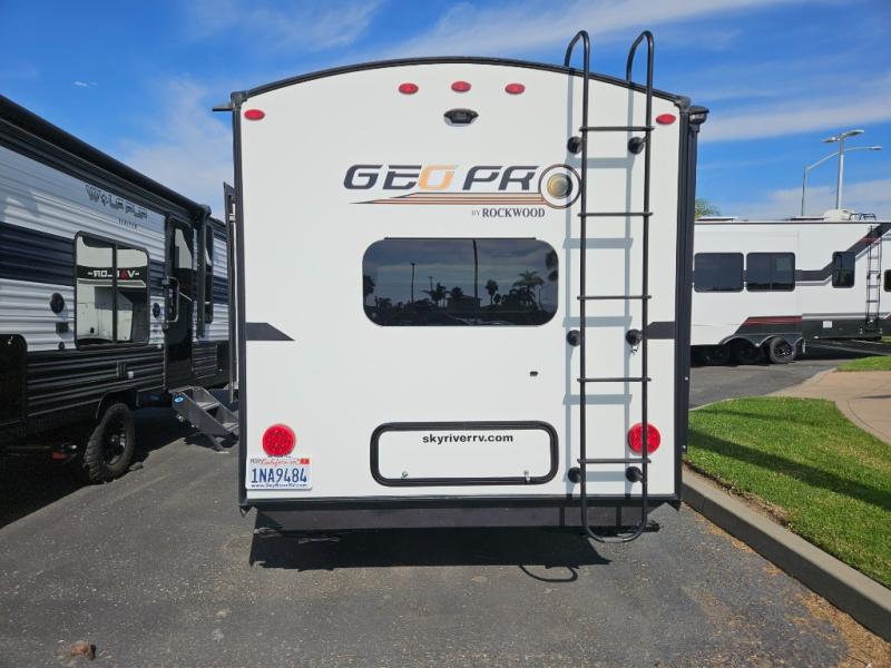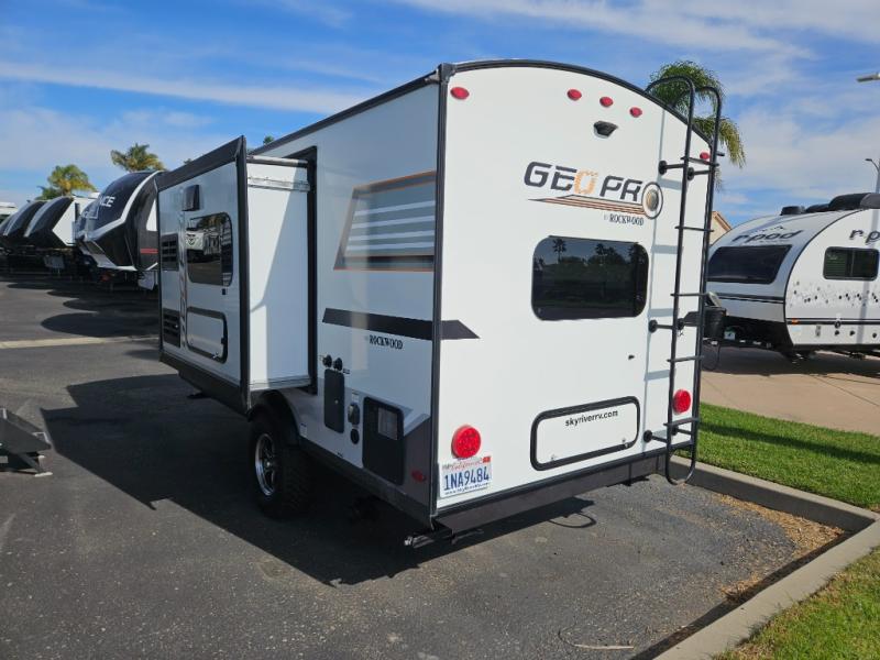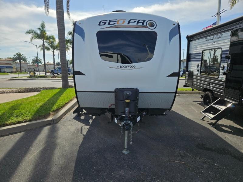 The Forest River Rockwood Geo Pro travel trailer is built to be towed by most "crossover" vehicles and smaller SUVs. Each model includes a WIFI Ranger WIFI Booster to boost your WIFI and give you a secure connection wherever you land, as well as a 12V TV with DVD player to entertain you all along the way. You will also appreciate the outdoor speaker for listening to your favorite broadcasts on the AM/FM stereo with Bluetooth and USB as you party outside in the cool night air.