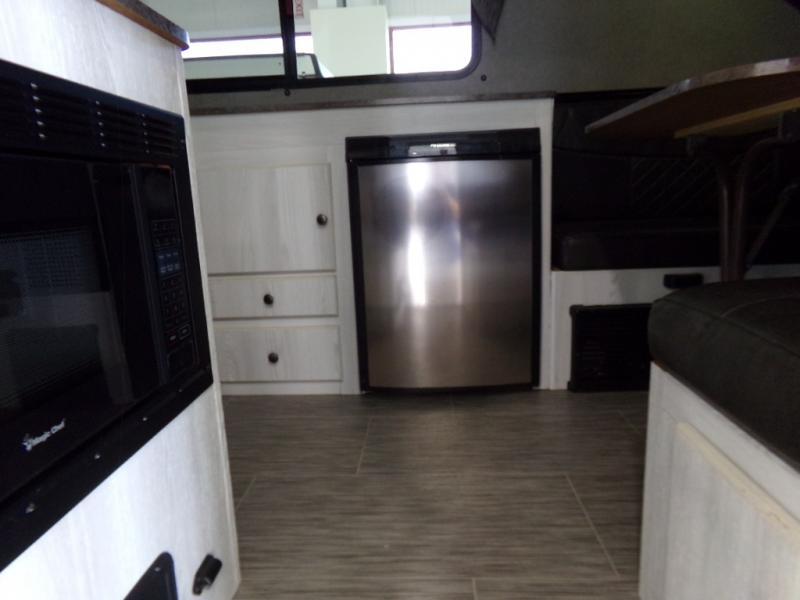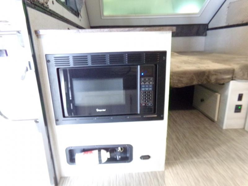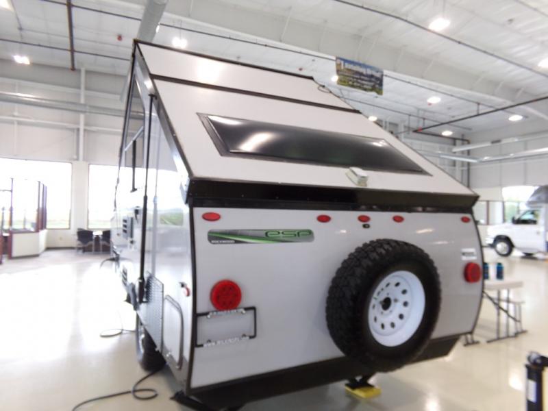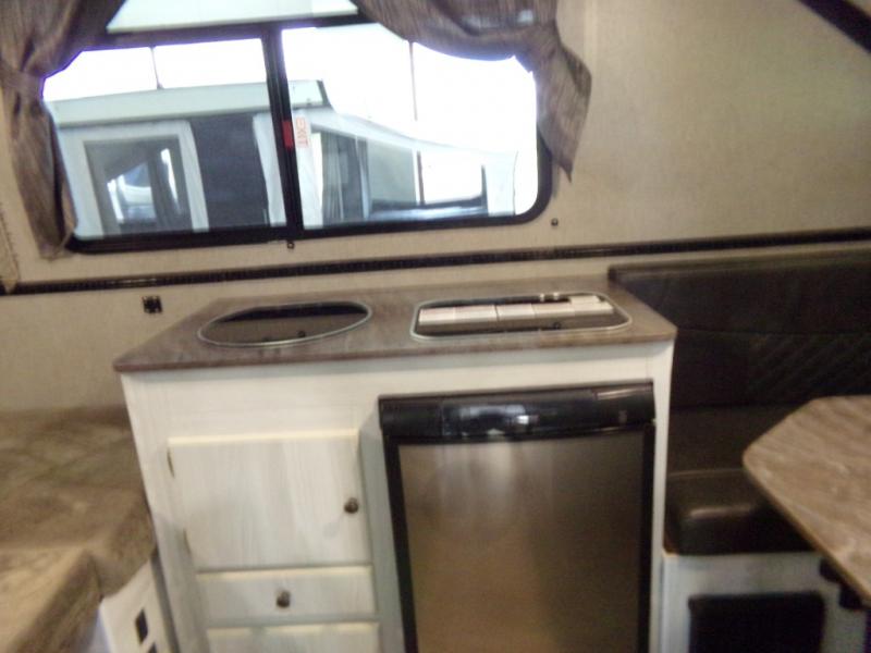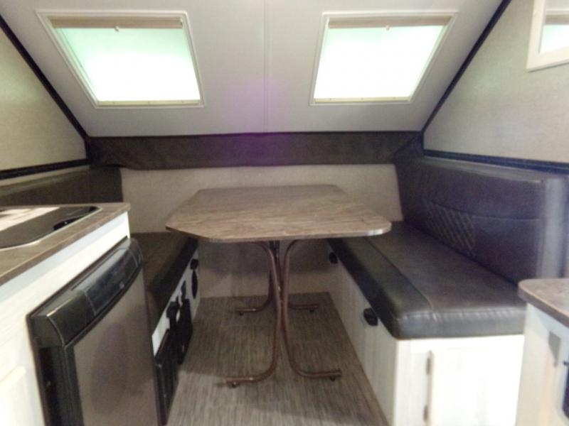 In any Forest River Rockwood Hard Side pop-up camper you will find the perfect product for your camping adventure. These units offer plenty of luxurious features from home such as a WiFi range booster, AM/FM stereo with Bluetooth USB ports, stainless steel look appliances, and a Slatewood interior with wood look flooring and leather appearance seating. The exterior construction consists of a one piece vacuum bonded fiberglass roof with a metal interior ceiling, a one piece undercoated structure wood floor, and an E-coated tubular steel frame, plus there are four E-Z crank-down stabilizer jacks with sand pads. You will also love the privacy this camper provides with the privacy curtains throughout, the two front roof tinted windows with shade, and the large rear roof tinted sky light with shade, plus there is a large, opening picture window for you to enjoy your scenery.
