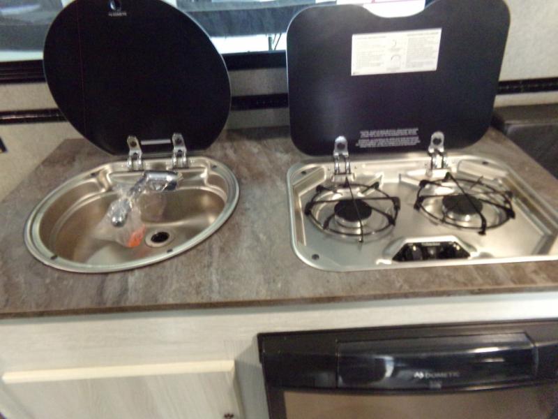 When you're ready to head into the great outdoors, check out this Forest River A213HW hard side high wall pop-up camper! It features room for the whole family with two twin beds with a nightstand in between the two. There is also a booth dinette for you to enjoy your meals at, as well as transform into an extra sleeping space, plus there is a front dormer to promote more open space and comfort. There is plenty of storage throughout the interior and EZ reach exterior trunk, plus other exterior storage locations. A distinct feature with this model is the residential toilet, no more trips outdoors!