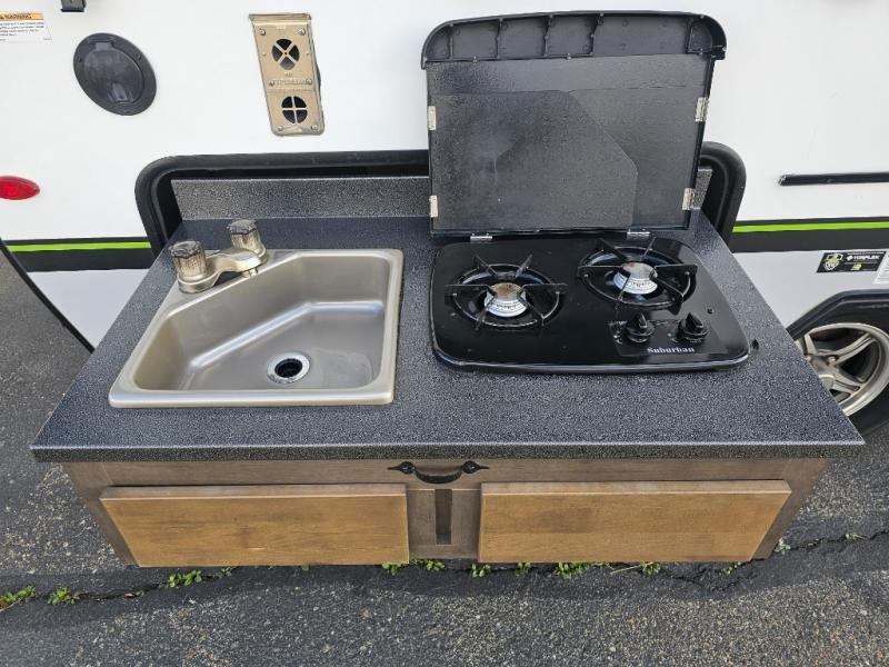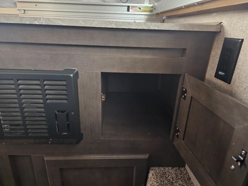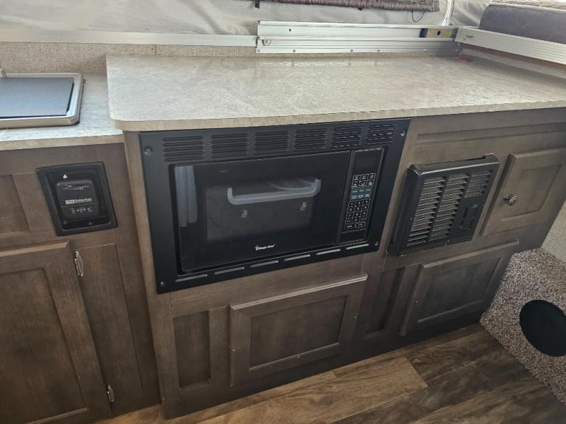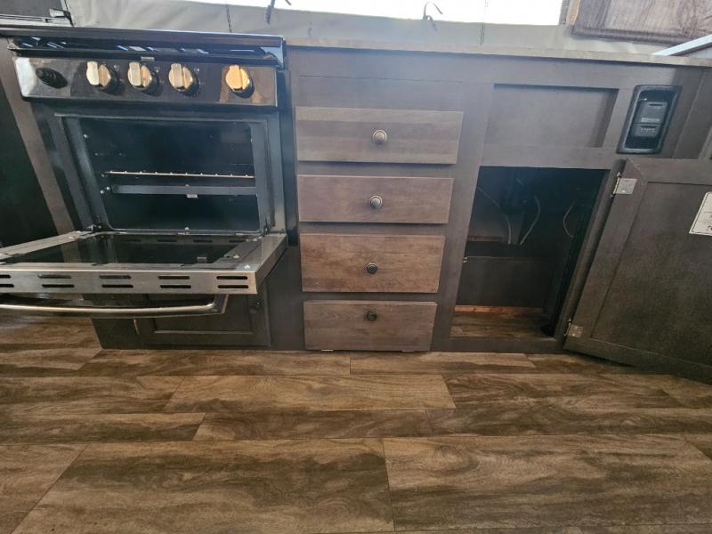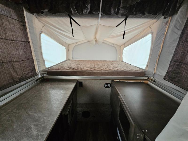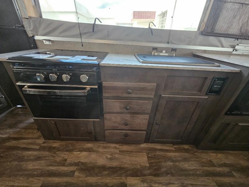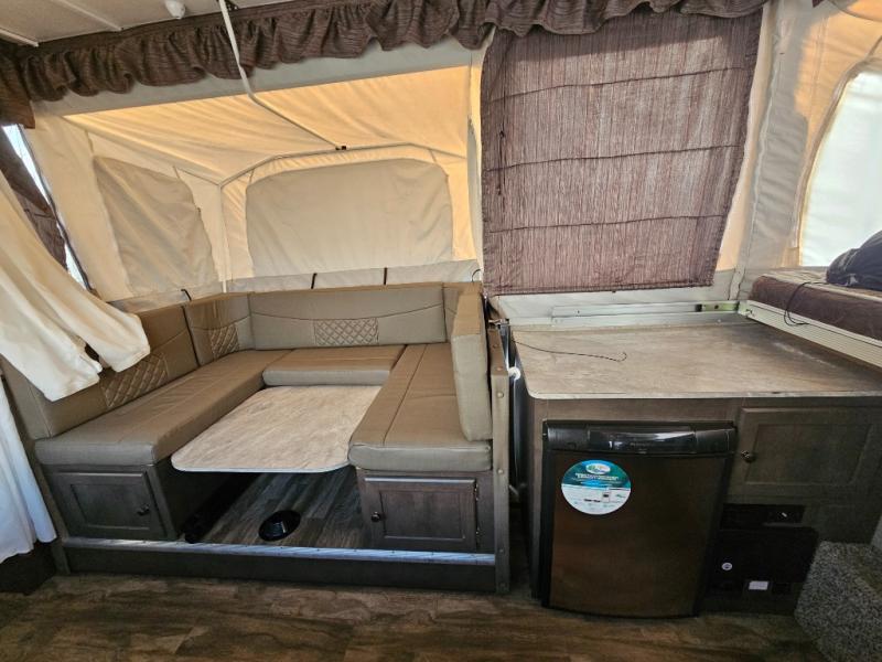 If you want an adventurous camping experience then pop into this Forest River Rockwood High Wall HW277 folding pop-up camper! It features a front king and a rear queen tent bed for sleeping, plus there is also a U-shaped dinette that you can eat your meals at or convert into an extra sleeping space. The grill master of your group will enjoy cooking on the outdoor gas grill with work table and the interior LED lighting brightens your way to a good camping trip!