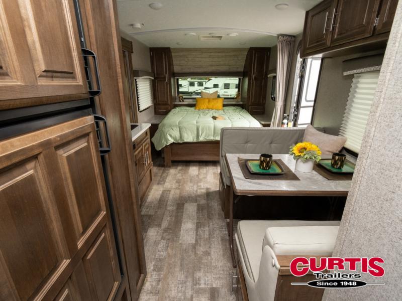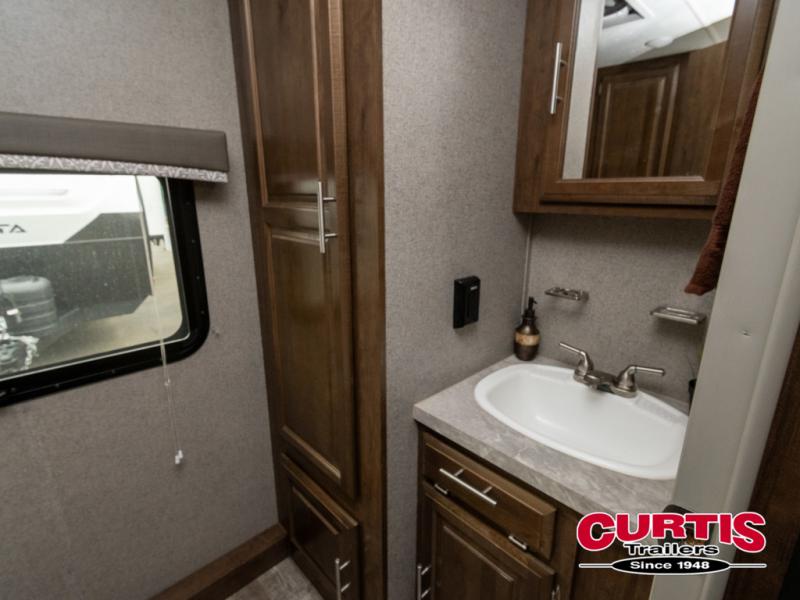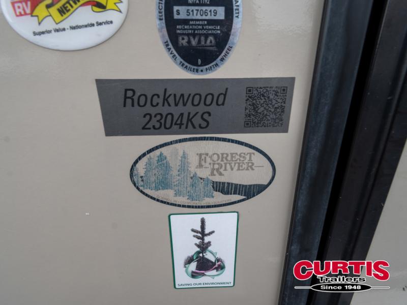 This single slide out Rockwood Mini Lite 2304KS by Forest River is a great travel trailer for a weekend away. In the kitchen area, there is a double door refrigerator and a pantry for your food storage needs while camping. You can hang your clothes in the wardrobe and lay your keys on a nightstand on either side of the Murphy bed. You will love the convenience and added privacy with the rear bath, which has not only a linen closet, but also a wardrobe available for you to keep things neat and tidy. Outside be sure to enjoy the shade from the 15' power awning with LED lights for those late night gatherings, cooking your favorite camp meals on the gas grill, and the pass-through storage compartments, plus additional exterior storage for all of your camping gear.