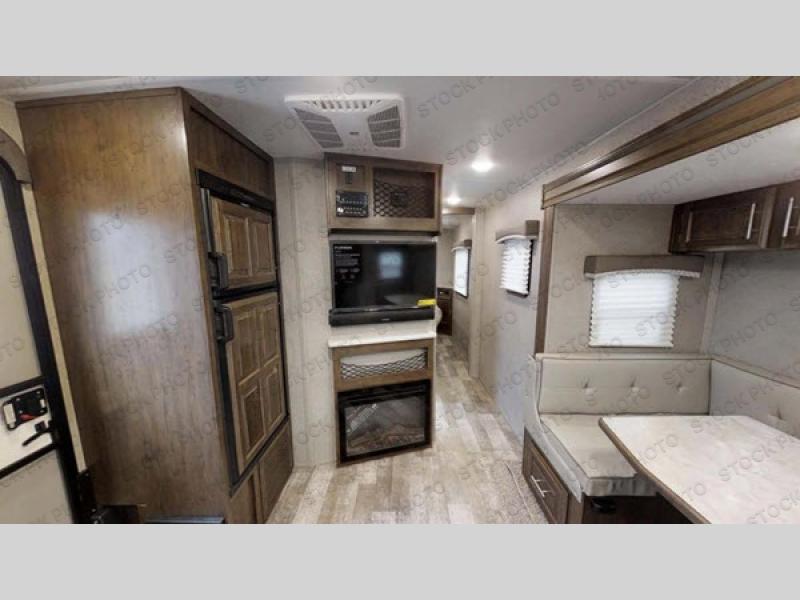 Start your next camping trip with this 2506S Rockwood Mini Lite travel trailer by Forest River. There is plenty of storage for you to keep your camping necessities between the overhead cabinets, the kitchen pantry, and all of the exterior storage compartments. You will love how easy it is to move around and prep your meals in the front kitchen, and you can comfortably enjoy them at the U-shaped dinette which can also be transformed into an extra sleeping space. Sitting in front of the warm, cozy fireplace with your favorite beverage is the perfect way to wind down your adventurous day!