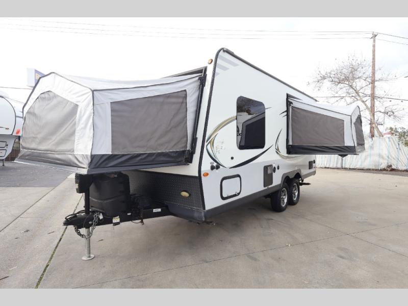 The Forest River Rockwood Roo is exactly what you should take a look at when searching for the ideal expandable. There is built in value in each model allowing your investment to go a long way! You will enjoy the radius roof with interior vaulted ceilings, the solid wood cabinet doors and drawer fronts, the residential full extension metal drawer guides, all the appliances necessary to make meals on the go, the bed cable system with no poles, and the WiFi Ranger WiFi Booster to mention a few reason you will love any expandable you choose!