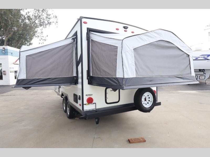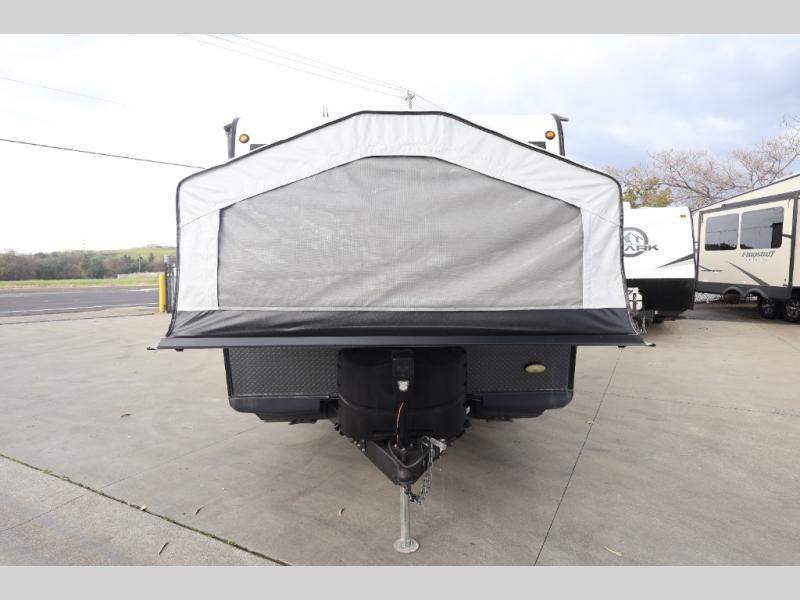 Searching for a travel trailer that will allow you to sleep seven family members, and feed them while enjoying the great outdoors? This expandable offers triple tent end beds, plus a booth dinette to accommodate your nighttime needs. You can make meals with the appliances provided. Whether you are looking inside the unit or outside for storage, there are plenty of places for your food, linens, and camping gear. No worries about staying clean, the full bathroom has you covered. Now imagine the whole family hanging out by the campfire, and playing games under the power awning. Stop your search!