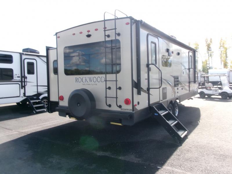 Lighten your load with any one of these Forest River Rockwood Ultra Lite travel trailers! All of these units have full aluminum frames and laminated fiberglass sidewalls to make for a sleek and sturdy unit to last you a lifetime. And with the torsion axle and rubber-ryde suspension you will enjoy a smooth ride each time you travel. Each travel trailer is easy to tow with any sized truck bed and comes with standard easy lube axles and Nev-R adjust brakes to ensure for a safe and smooth arrival. To keep you cool on a warm day you will enjoy a 13,500 BTU A/C unit and to warm you up on a cooler day, there is a quick recovery auto ignition gas/electric water heater for a hot shower. Between the LED TV with a multi-directional antenna, the WiFi ranger WiFi booster sky 4, and the multi zone stereo with DVD/CD/AM/FM/MP3 player hook-up and Bluetooth control, you will find entertainment for everyone in your group. This is an ultra lite decision so come choose your model today!