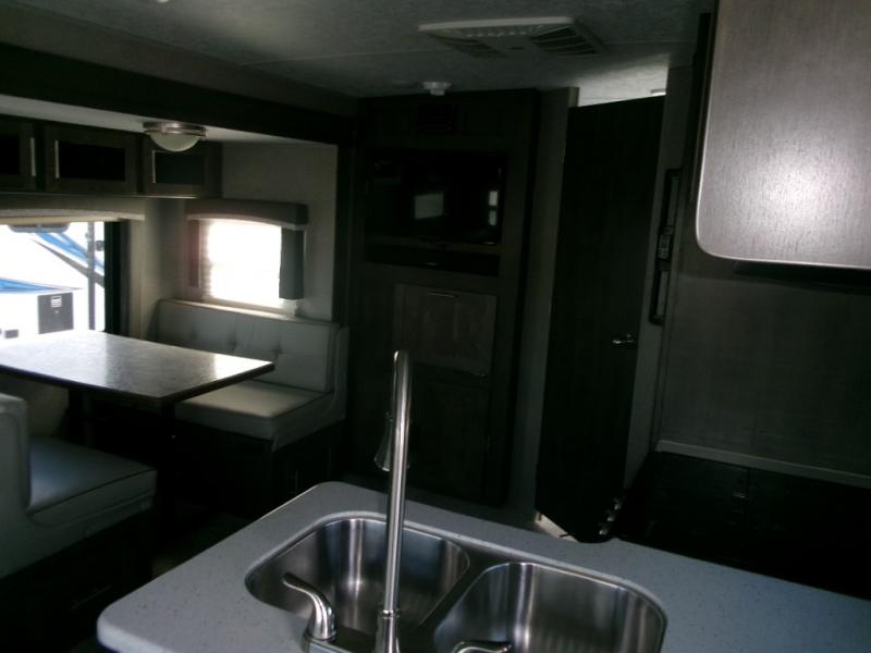 The search is over! This Forest River Rockwood Ultra Lite 2604WS travel trailer offers double entry doors for a smooth flow of traffic in and out of the unit. There are plenty of overhead cabinets throughout the trailer to hold your camping necessities as well as a drop frame pass-through storage to easily access and store your outdoor gear, plus additional exterior storage. While you are whipping up your best meal in the kitchen, you can socialize with the rest of your group as they sit comfortably in either one of the two swivel rockers with tables on either side or on the 67" hide-a-bed sofa. You will also enjoy serving your meal on the countertop extension and enjoying it at the booth dinette. By having the walk-through bath, it allows everyone to have an easy access, especially if you are staying in the front private bedroom.