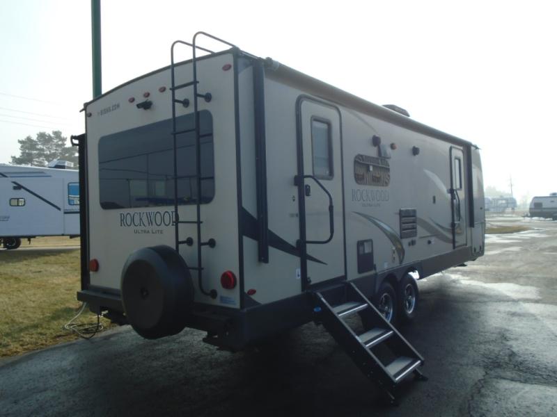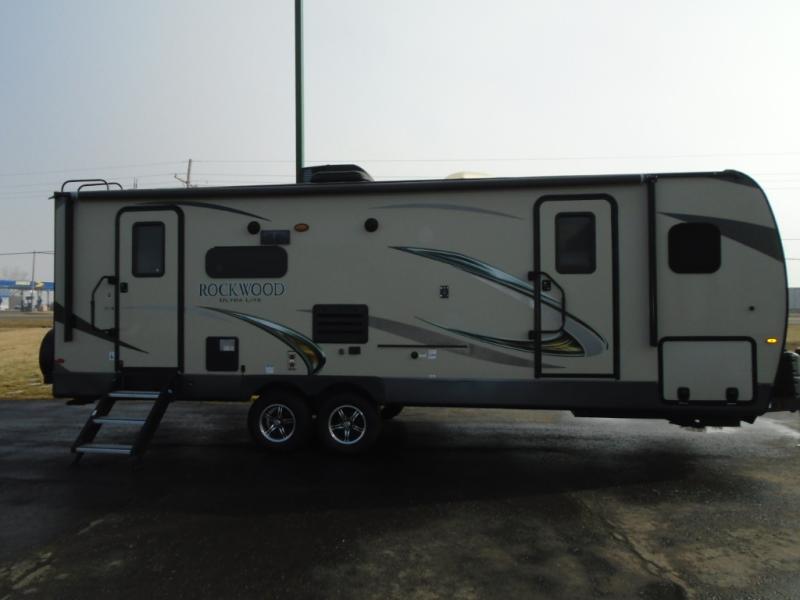 Lighten your load with any one of these Forest River Rockwood Ultra Lite travel trailers! All of these units have full aluminum frames and laminated fiberglass sidewalls to make for a sleek and sturdy unit to last you a lifetime. And with the torsion axle and rubber-ryde suspension you will enjoy a smooth ride each time you travel. Each travel trailer is easy to tow with any sized truck bed and comes with standard easy lube axles and Nev-R adjust brakes to ensure for a safe and smooth arrival. To keep you cool on a warm day you will enjoy a 13,500 BTU A/C unit and to warm you up on a cooler day, there is a quick recovery auto ignition gas/electric water heater for a hot shower. Between the LED TV with a multi-directional antenna, the WiFi ranger WiFi booster sky 4, and the multi zone stereo with DVD/CD/AM/FM/MP3 player hook-up and Bluetooth control, you will find entertainment for everyone in your group. This is an ultra lite decision so come choose your model today!