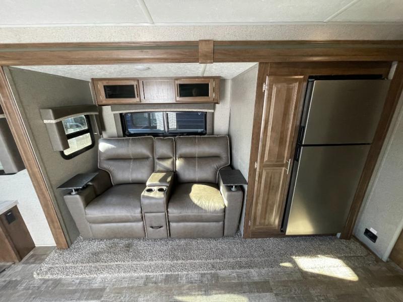 Enjoy being in the great outdoors with this Forest River Rockwood Ultra Lite travel trailer model 2612WS. Open up the 21' power awning with LED lights and stay out all day or night, and when it's raining you can still stay dry while you enjoying the cool rain with a hot cup of coffee. You will appreciate the secret storage behind the TV and the pantry below for storing your goodies, there is also a second pantry next to the gas/electric large refrigerator where you can keep your perishables nice and fresh. The double entry doors make for a smooth flow of traffic in and out of the unit, and one of the doors conveniently opens into the front private bedroom where you can enjoy a good night's rest on the queen Serta bed. You can also take a relaxing nap on the 76" hide-a-bed sofa, or eat a meal in the booth dinette, the choices are endless!