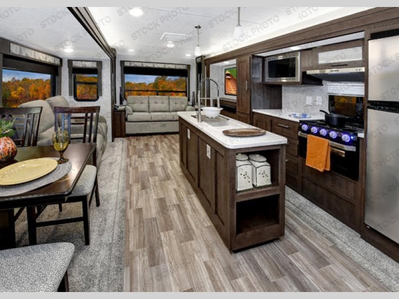 Plan to make plenty of memories with your family when you choose to camp in a Forest River Salem travel trailer! Along the exterior you will find helpful features such as an oversized pass-through storage compartment that will allow you to bring along more of what you love and true stabilizer jacks with J.T. Strong Arms to provide a firm and solid support for the Salem. The kitchens are sure to draw your attention with the 10.7 Everchill stainless steel refrigerator, the LG solid surface countertops, the residential designer spring faucet, and the stainless steel roll-up sink cover, and you will only find doors leading into the master bedroom, never curtains.