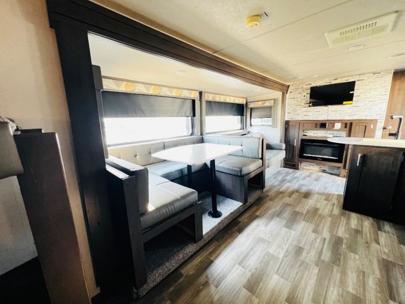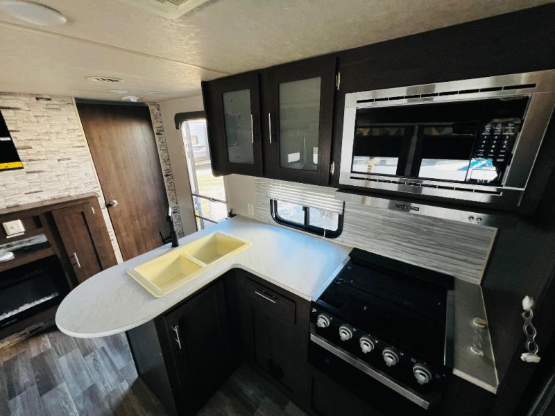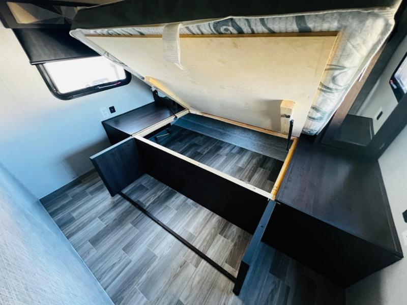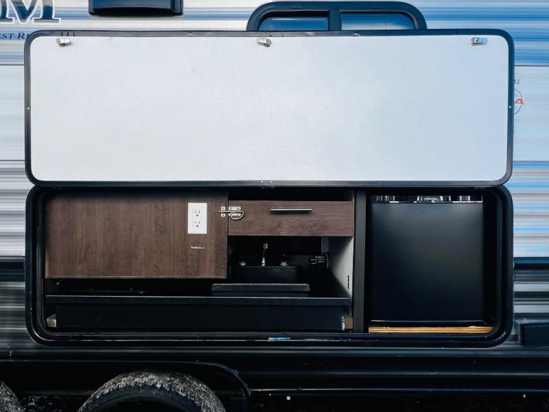 These Midwest Salem Cruise Lite travel trailers by Forest River feature a new modern design with an aerodynamic front profile, making them easier to tow. Inside, you'll find plenty of storage throughout, including Stow and Go storage under the dinette for all your smaller items. Each unit includes new upgraded Shaw linoleum, full extension ball bearing drawer guides, a three burner cooktop, and USB ports in the bedrooms and bunk rooms. Outside, keep the party going with two exterior speakers with blue LED lights, plus there is a power awning with LED lights so you can sit out late and enjoy the stars!