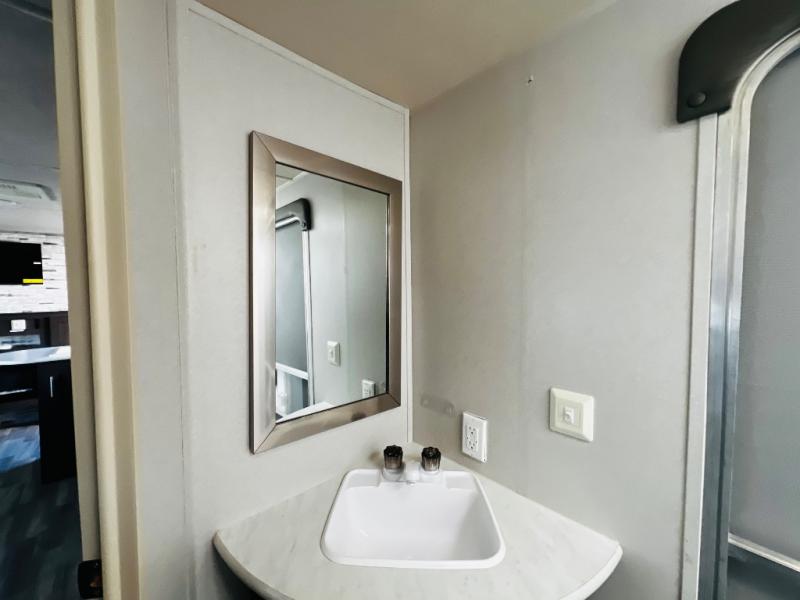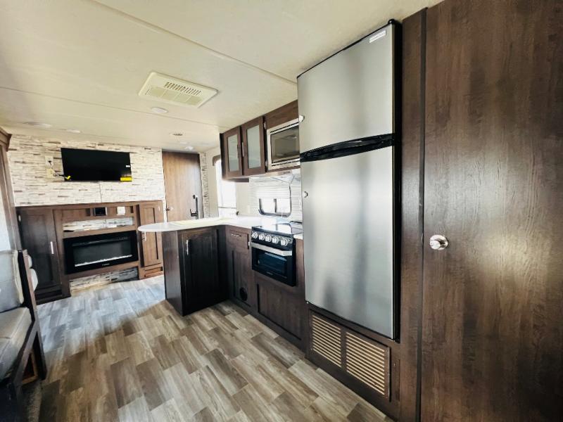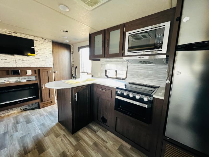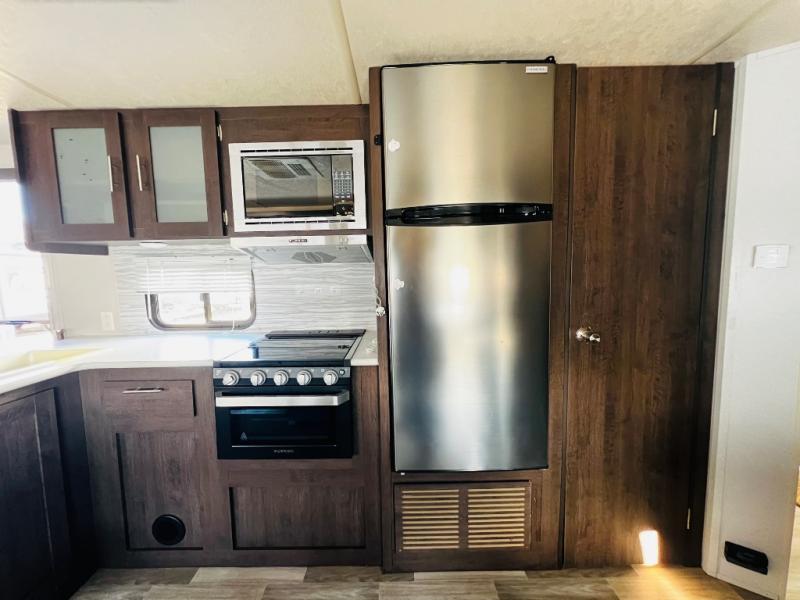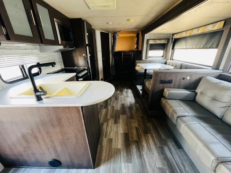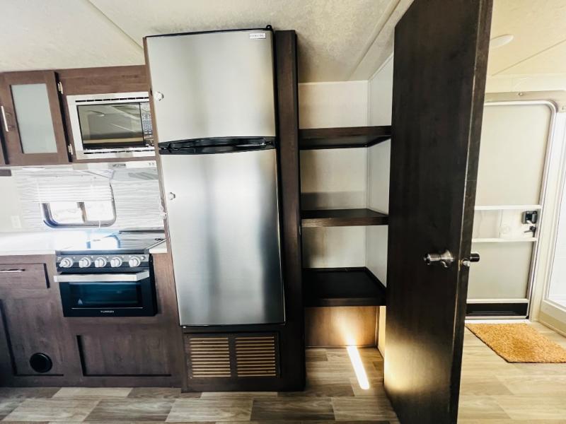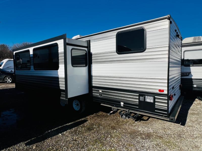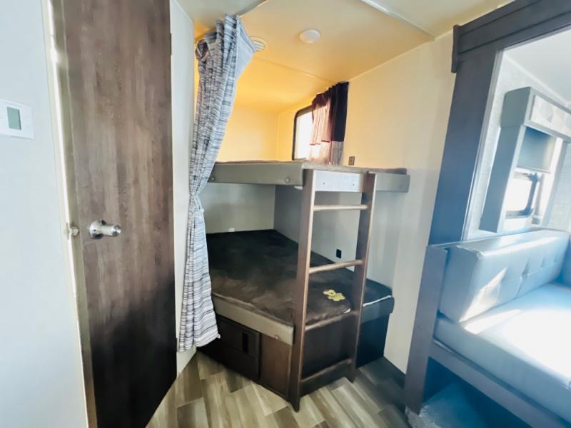 This Salem Cruise Lite travel trailer is excellent for a large family! With a double set of bunks, two entry doors, and a large slide in the central living area, you can easily see how model 263BHXL can serve your family well. An L-shaped counter with double sinks is perfect for prepping meals and a three burner range and microwave oven is perfect for cooking up light meals. There is even a private entry door to the bath for added convenience so you can easily come in from outside. The bunks have a ladder for quick access to top bed and are perfect for the kids or extra guests. This unit features a front pass through storage for you gear and a 16' awning provides an outdoor living space.