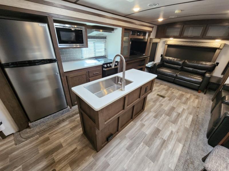 When you want time away from home, but yet want the comforts of home, then choose a Salem Hemisphere GLX travel trailer by Forest River. These models have plenty of residential features such as a stainless steel Dometic double door refrigerator, an under mount sink, stain resistant carpet in the living room and Beau plank wood linoleum in the kitchen. Along the exterior you will find an aerodynamic front cap with LED light strip, gel coated fiberglass exterior, and marine grade exterior speakers with a blue LED light. The One Touch electric awning provides plenty of shade and allows you to instantly have a nice outdoor living space and more!