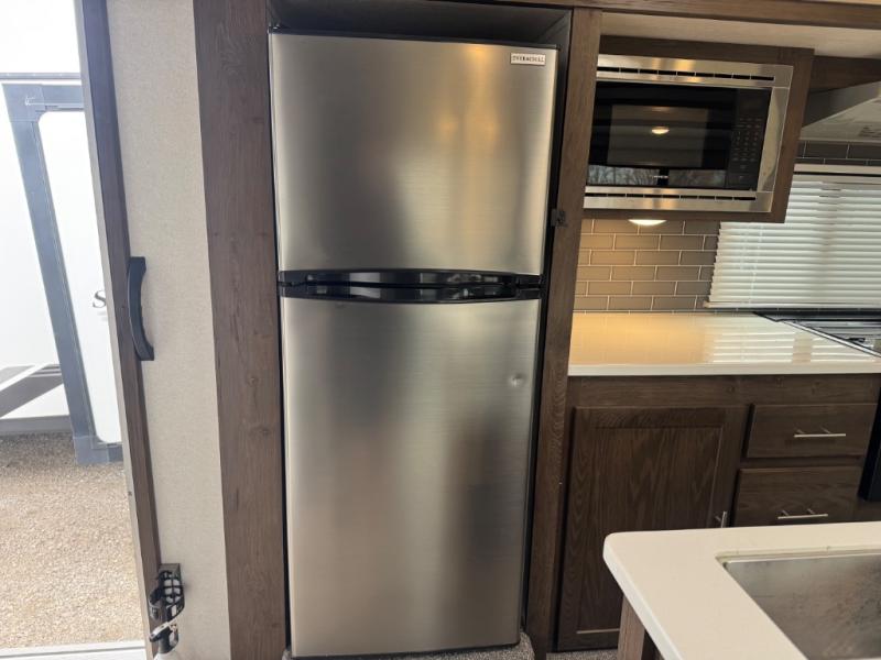 When you want time away from home, but yet want the comforts of home, then choose a Salem Hemisphere GLX travel trailer by Forest River. These models have plenty of residential features such as a stainless steel Dometic double door refrigerator, an under mount sink, stain resistant carpet in the living room and Beau plank wood linoleum in the kitchen. Along the exterior you will find an aerodynamic front cap with LED light strip, gel coated fiberglass exterior, and marine grade exterior speakers with a blue LED light. The One Touch electric awning provides plenty of shade and allows you to instantly have a nice outdoor living space and more!