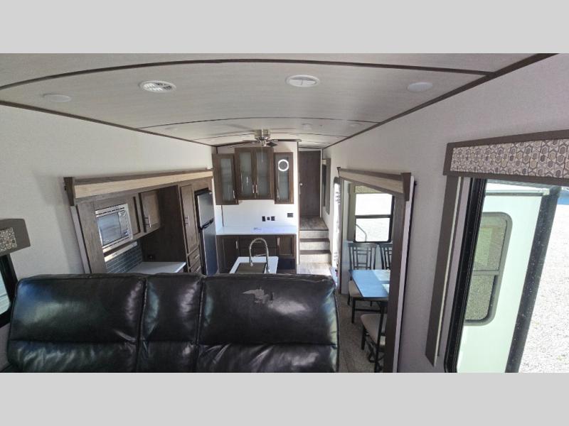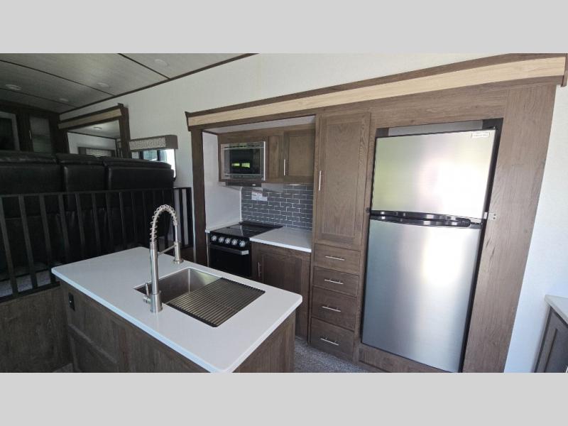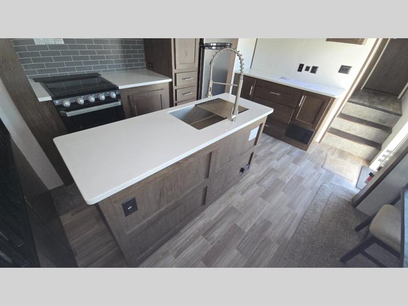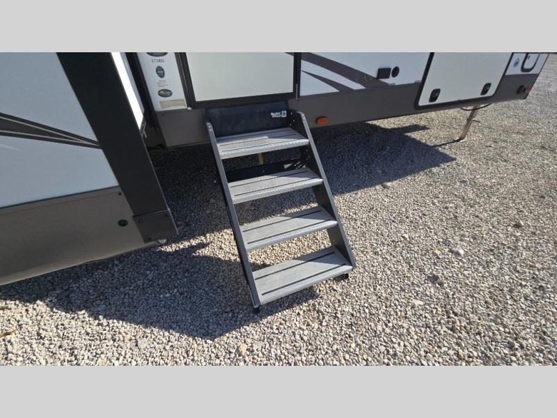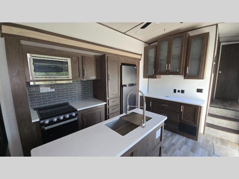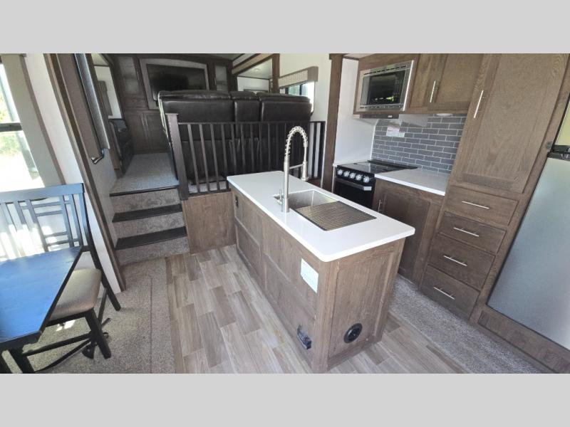 Comes with 50" LED TV, Power Awning, Enclosed Heated Underbelly, High Rise Faucet w/Pull Out Sprayer, VIP Package, Spare Tire, Ladder, Ceiling Fan, 15k A/C, W/D Prep, 2nd A/C, 10 Gal W/H, Extreme Weather Package