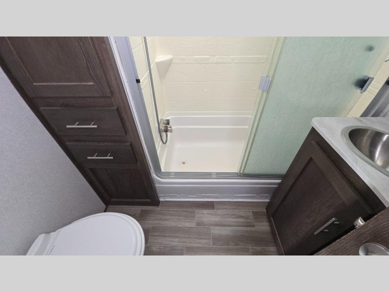 When you want time away from home, but yet want the comforts of home, then choose a Salem Hemisphere GLX fifth wheel by Forest River. These models have plenty of residential features such as a stainless steel Dometic double door refrigerator, an under mount sink, stain resistant carpet and Beau plank wood linoleum. Along the exterior you will find an aerodynamic front cap with LED light strip, gel coated fiberglass exterior, and marine grade exterior speakers with a blue LED light. The One Touch electric awning provides plenty of shade and allows you to instantly have a nice outdoor living space and more!