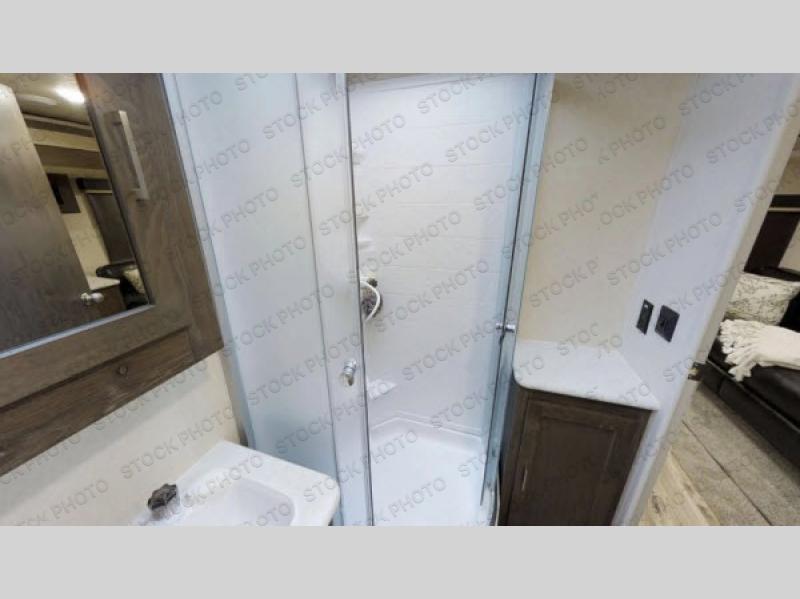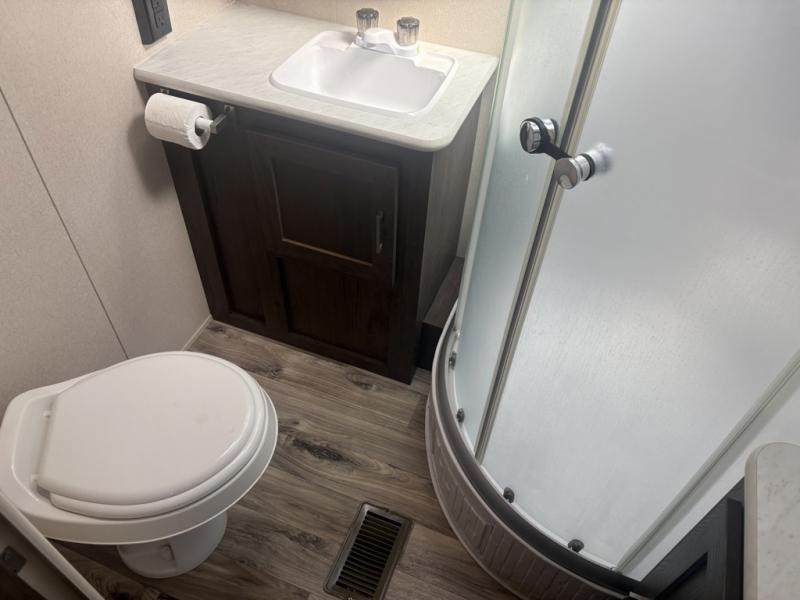 When the campground is calling your name you will want a Salem Hemisphere Hyper-Lyte travel trailer! These models are stylish with a gel coated fiberglass exterior and a feature a Norco cable slide out system and Dexter axles. In the bedroom you'll appreciate dual USB ports on both sides of the bed and strut lifted storage under the bed for all your luggage. The added touches throughout the kitchen include a 10.7 cu.ft. stainless steel Everchill residential refrigerator, a stainless steel microwave, plus Shaw Guardian Hickory Way linoleum. The living room will be a gathering place with the Jensen 32" LED TV with Bluetooth CD/DVD/FM/USB player and bar speakers.